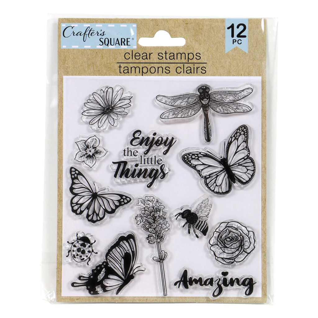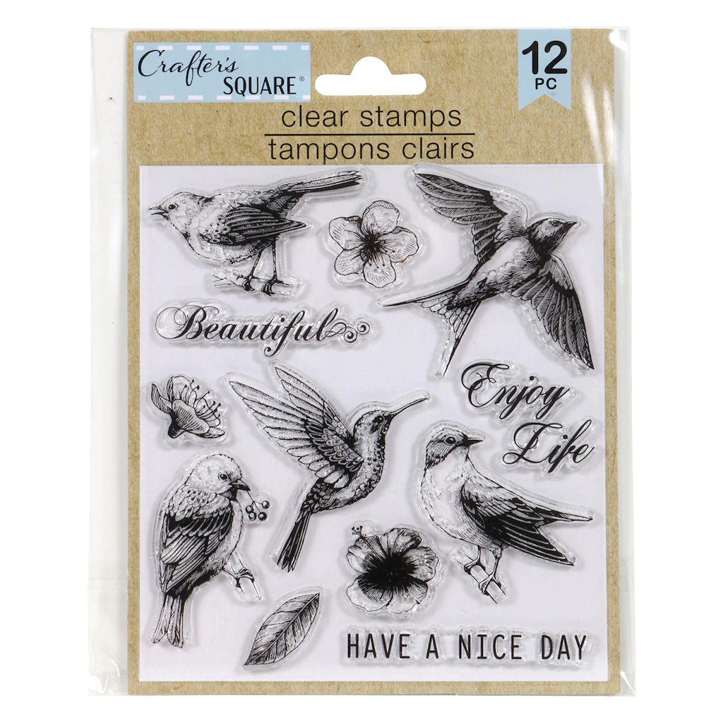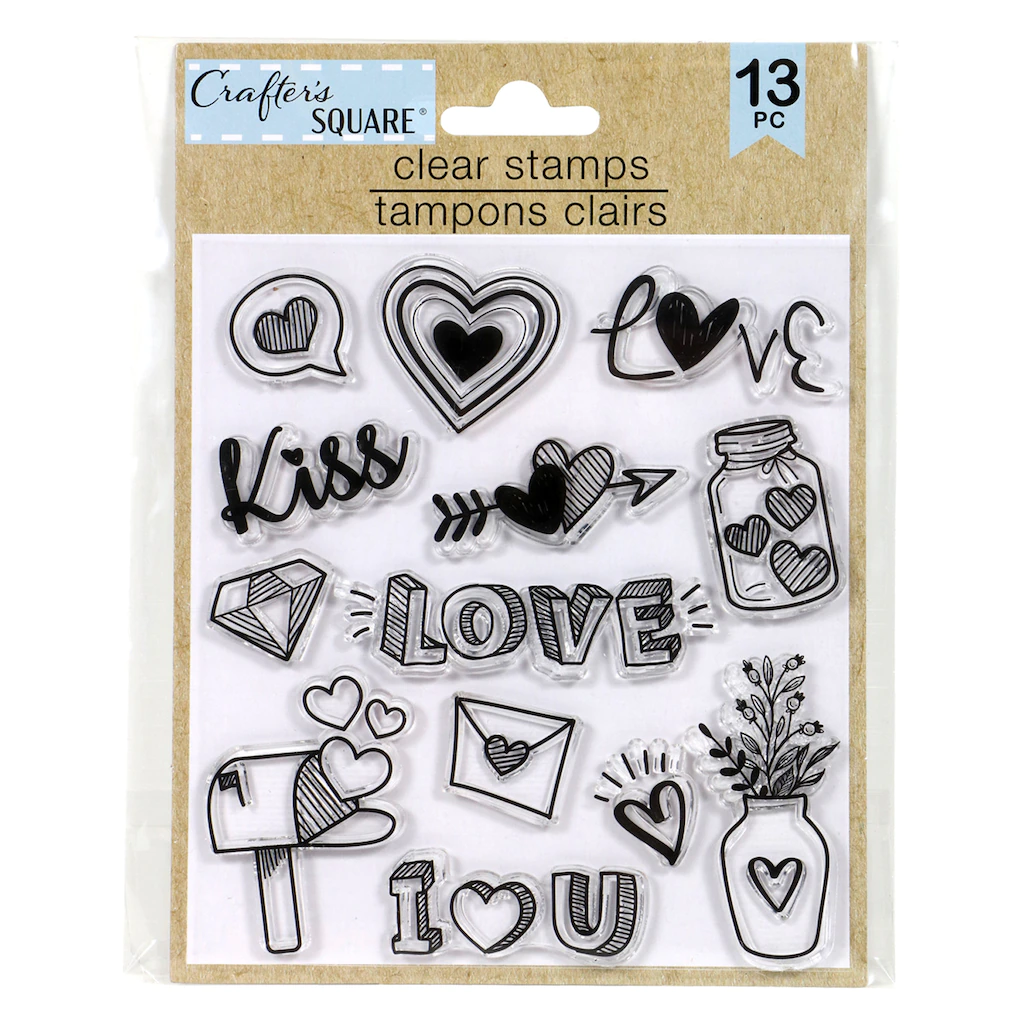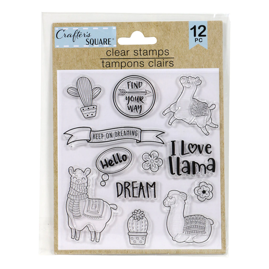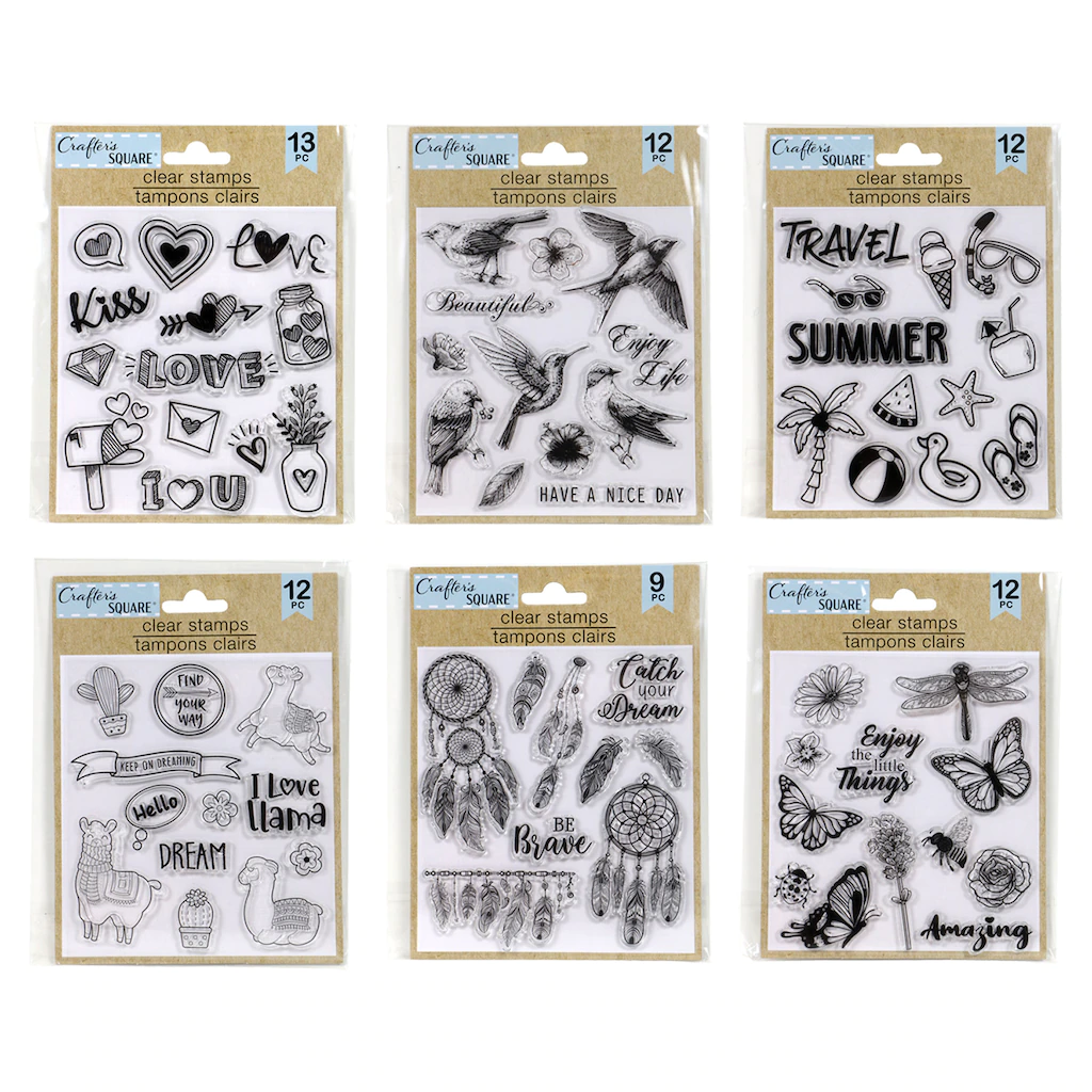 Assortment Details: Crafter’s Square® Clear Stamp Sets assorted among hearts, birds, summer, llamas, dreamcatchers, and butterflies