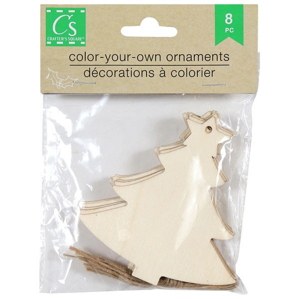 Made from plywood, these Crafter’s Square Color-Your-Own Ornaments are ideal for little ones who follow your lead and create to the best of their ability, but LOVE to see their handiwork hanging from the tree. However, experienced crafters can truly make lovely family keepsake ornaments from these wood cut-outs. They are assorted among Santas, snowflakes, snowmen, and Christmas trees and all come with the string from which you can hang them. They are approximately 3.5-in. tall.