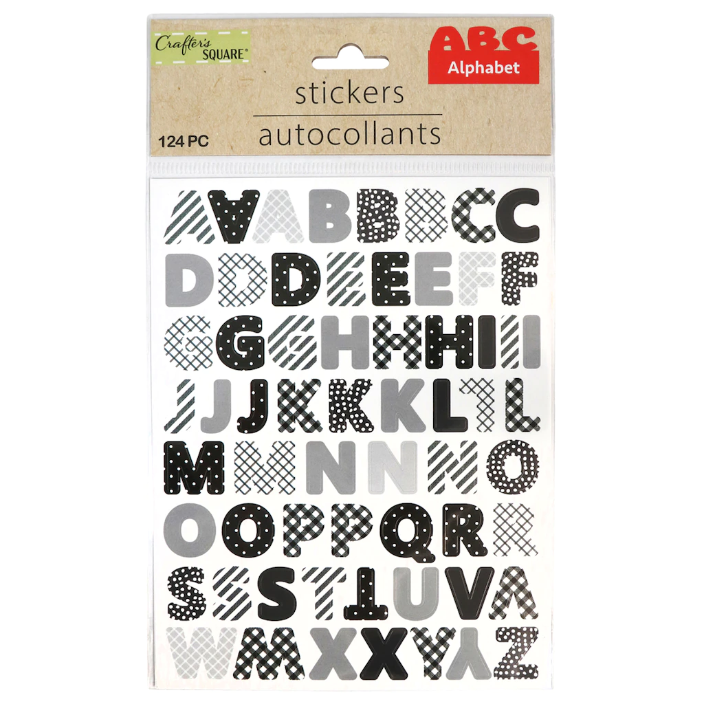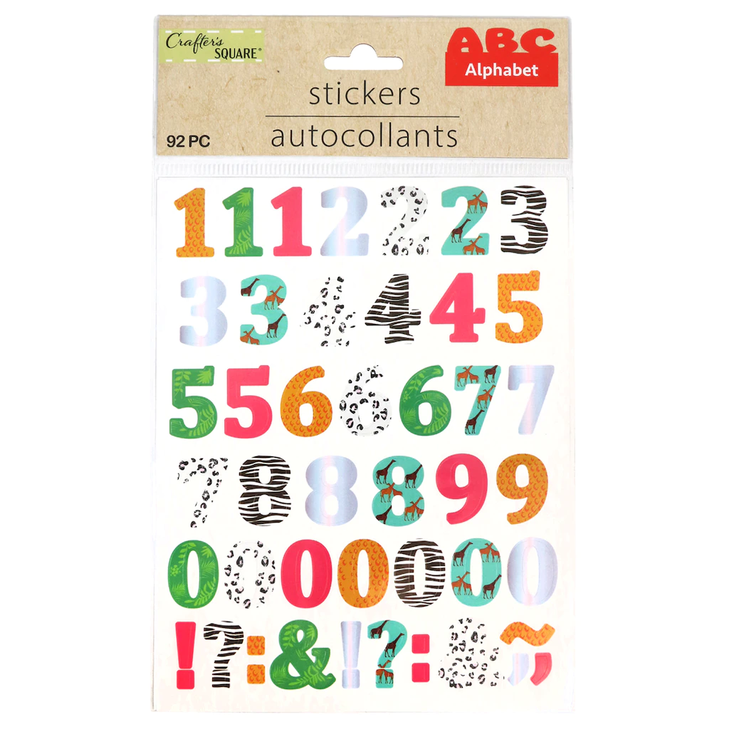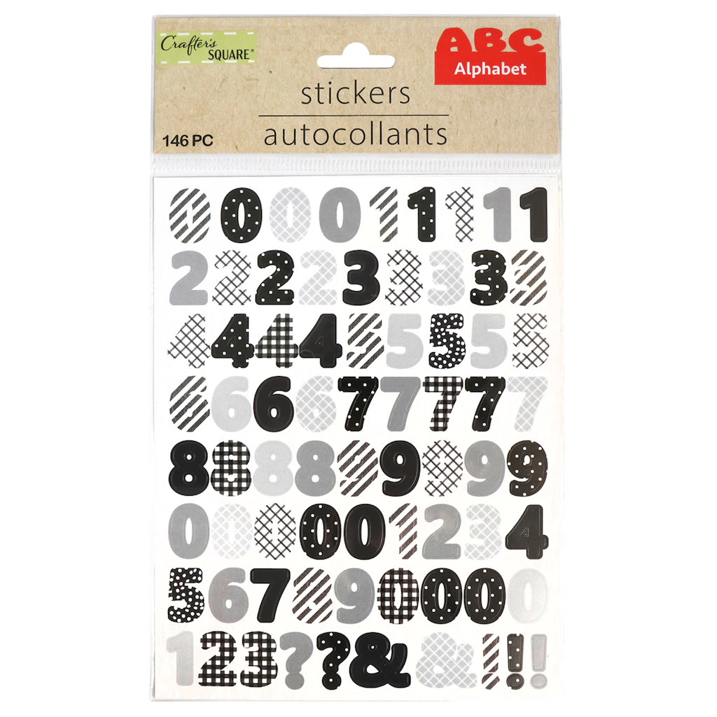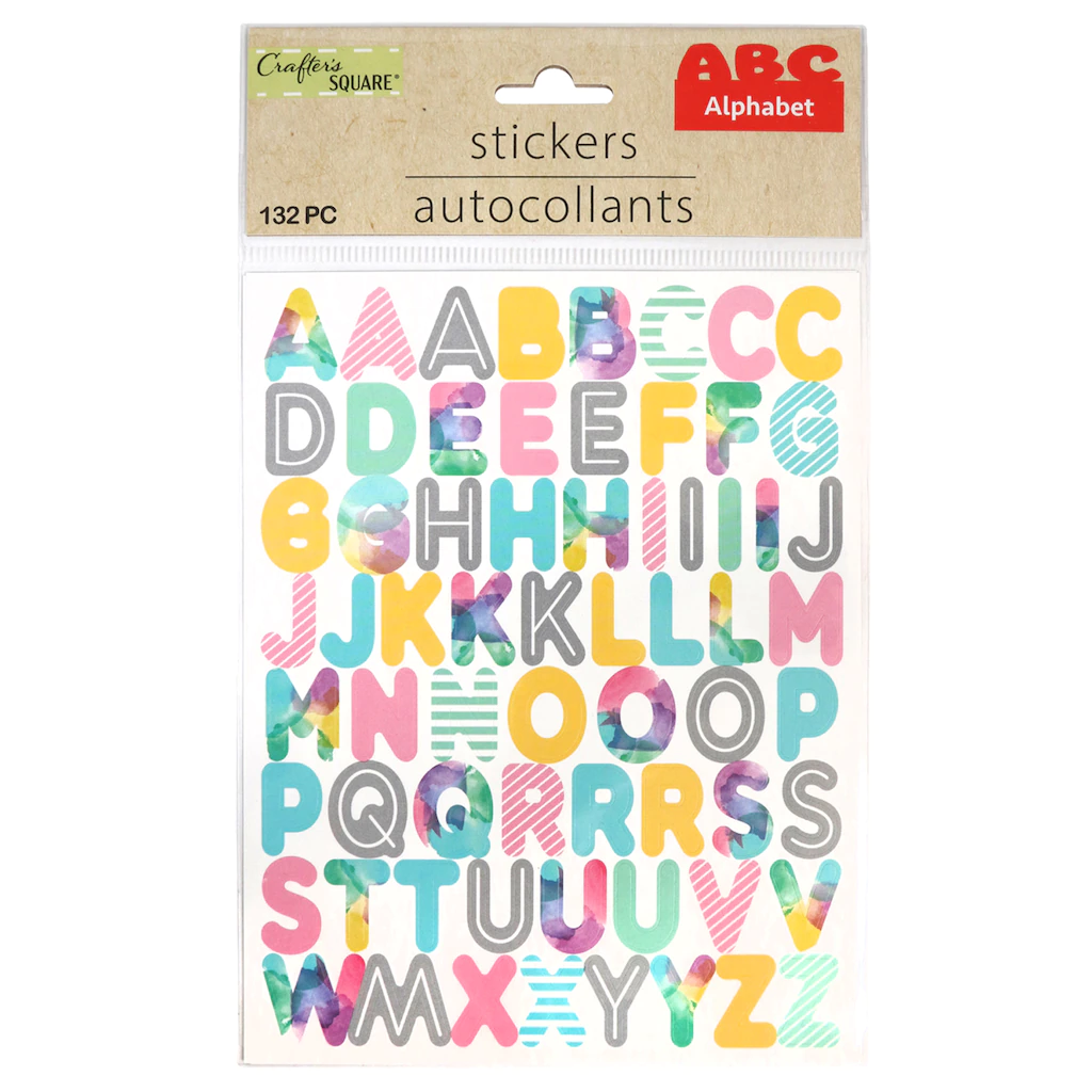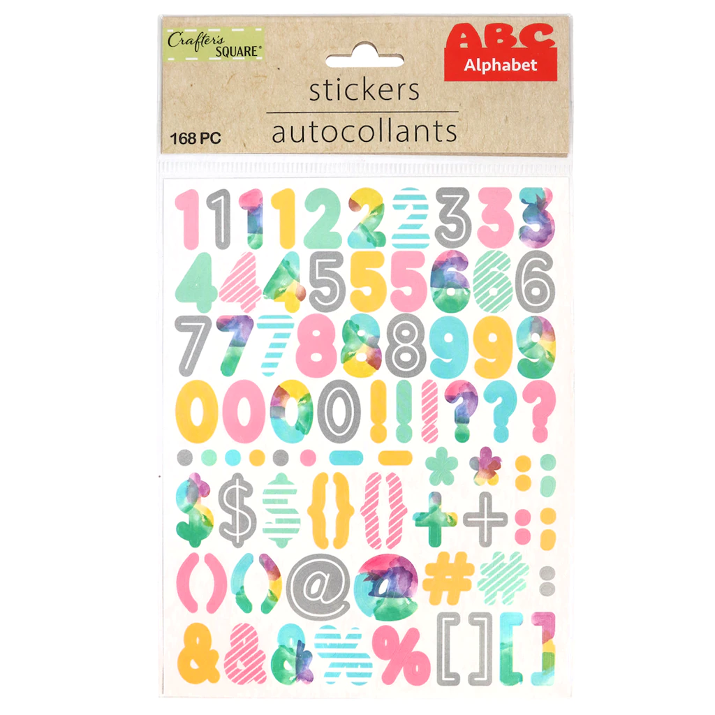 Add some colorful sayings or labels to your possessions the easy way. These 2-sheet packs of Crafter’s Square® stickers contain many different letters and numbers in pack sizes that range from 88 to 168; a wide variety of sticky possibilities. They are assorted among the 6 pack designs shown. Assortment may vary.