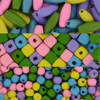 Get crafty and creative. These 3 assorted packages of wooden beads will make great homemade jewelry and decor. Packages include pink, green, lavender, yellow, and blue beads and their assorted among their 3 shapes and pack counts. Ages 5+.