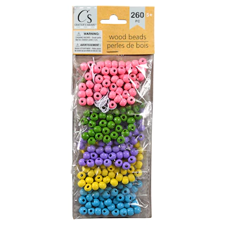 Assortment Details: Crafter’s Square® Colorful Wooden Beads assorted among packs of 85, 90, and 260 pieces and among the 4 colors shown