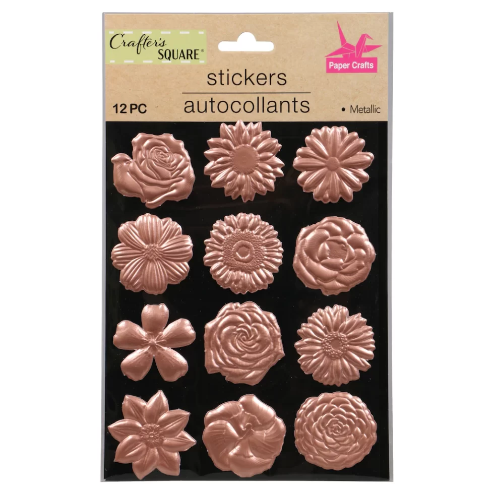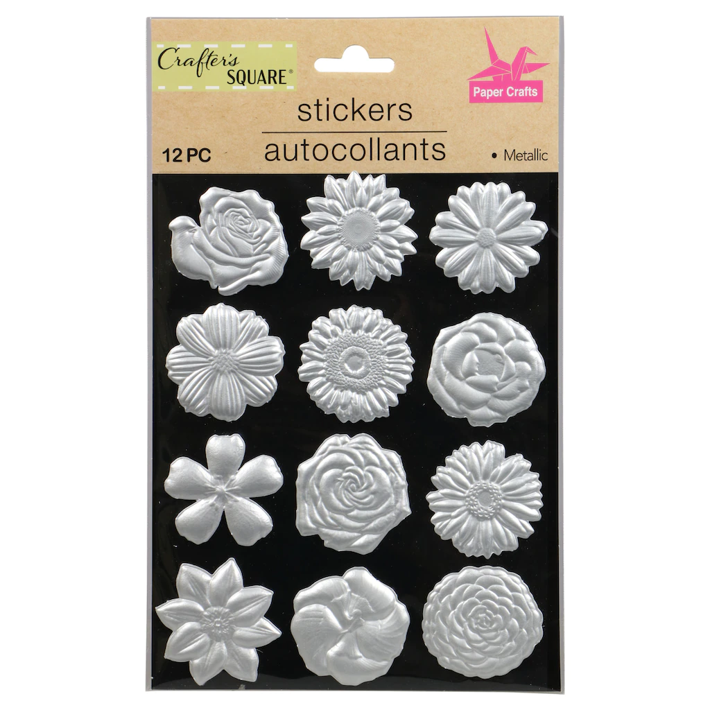 Crafter’s Square Embossed Metallic Floral Paper Stickers