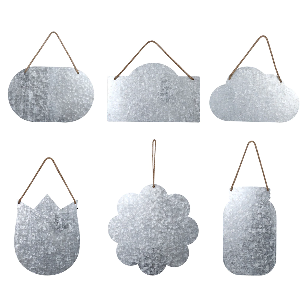 Assortment Details: Crafter’s Square® Galvanized Hanging Metal Signs assorted among the six styles shown.