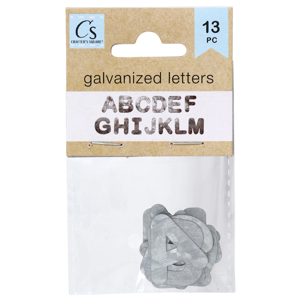 Creative thinkers will find entirely new ways to use the English alphabet. With Crafter’s Square® mini galvanized letters people of all ages can make crafts, and decorate scrapbooks or furniture, design projects for homes and businesses, create art, and much more without breaking the bank. Letters come in 13-ct. packs and each letter is 0.875×0.875-in. The 2 assorted packs are split between A-M and N-Z letters.