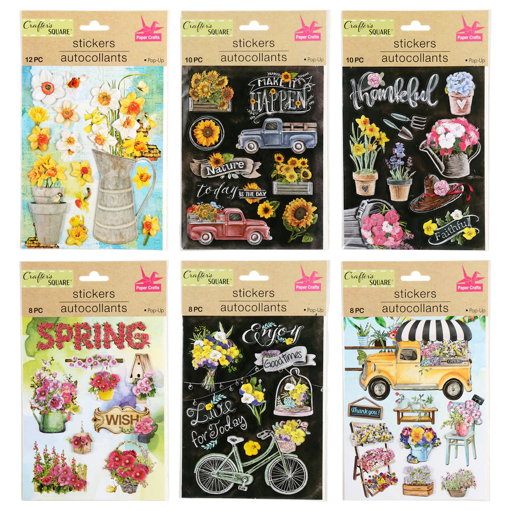 Assortment Details: Crafter’s Square™ Pop-Up Floral Design Stickers assorted among the 6 packs. Assortment may vary.