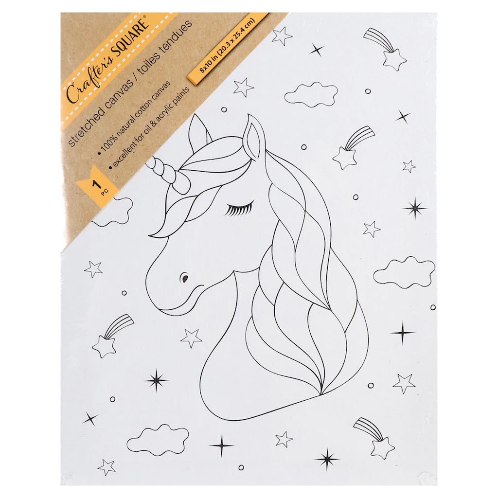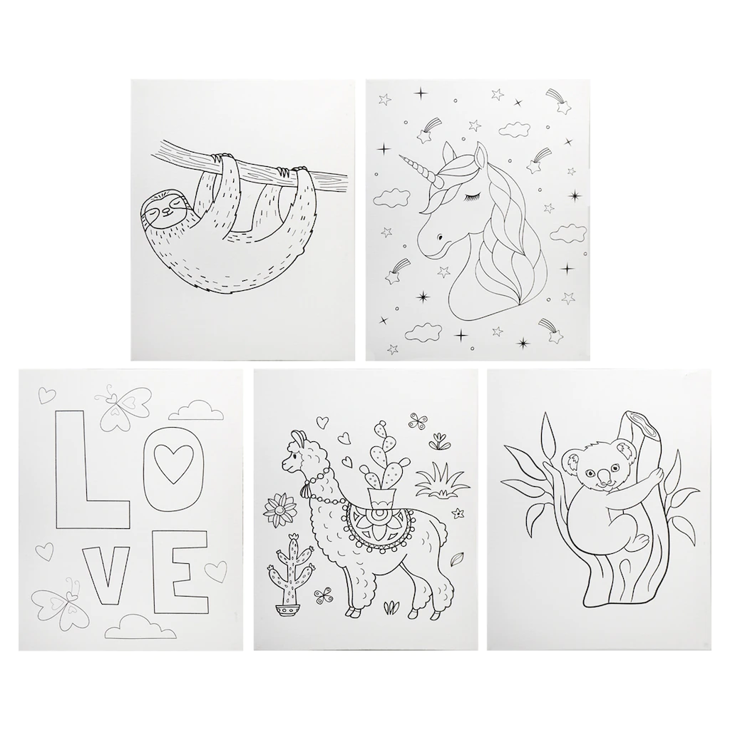 Crafter’s Square Preprinted Stretched Canvases are ideal for beginning painters who will enjoy choosing their colors to create a painting that has been sketched out for them. They are assorted among LOVE, sloths, llamas, koalas, and unicorns
