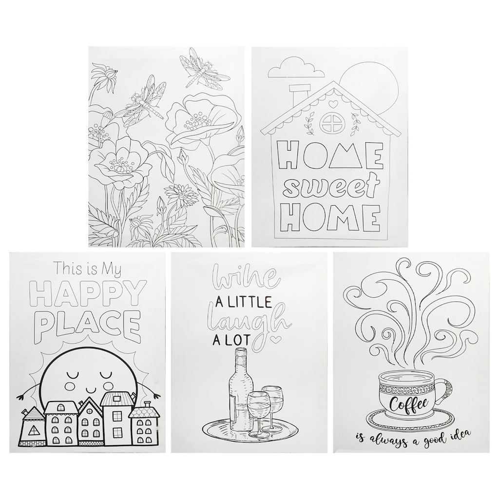 Assortment Details: 8×10 in. Crafter’s Square® Preprinted Stretched Canvases assorted among “Home Sweet Home,” “This Is My Happy Place,” “Wine a Little Laugh a Lot,” “Coffee is always a good Idea,” and flowers & dragonflies
