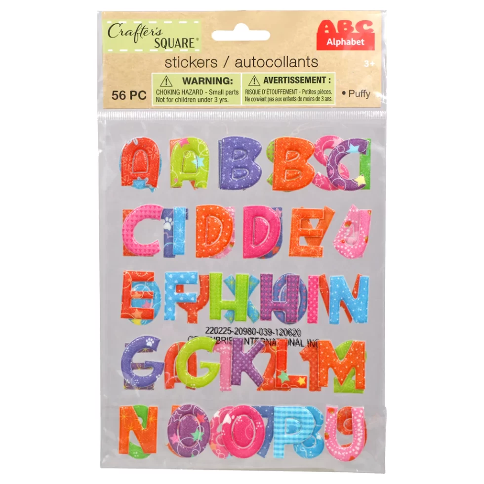 Crafter’s Square Puffy Alphabet Stickers, 56-ct. Packs