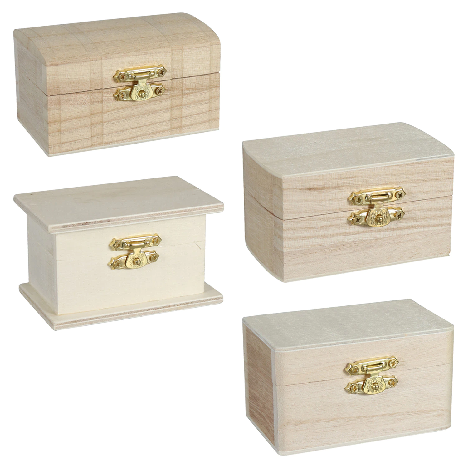 Assortment Details: 2×3.5×2-in. Crafter’s Square™ Small Wooden Gift Boxes assorted among the 4 styles shown.