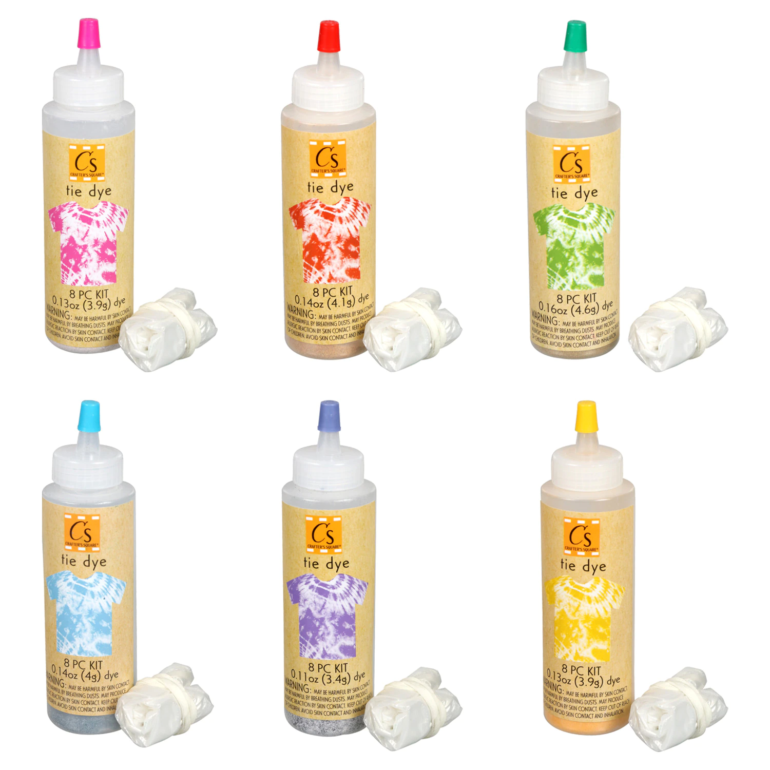 Assortment Details: 8-pc. Crafter’s Square® Tie-Dye Kits assorted among pink, red, green, turquoise, yellow, and purple dye.