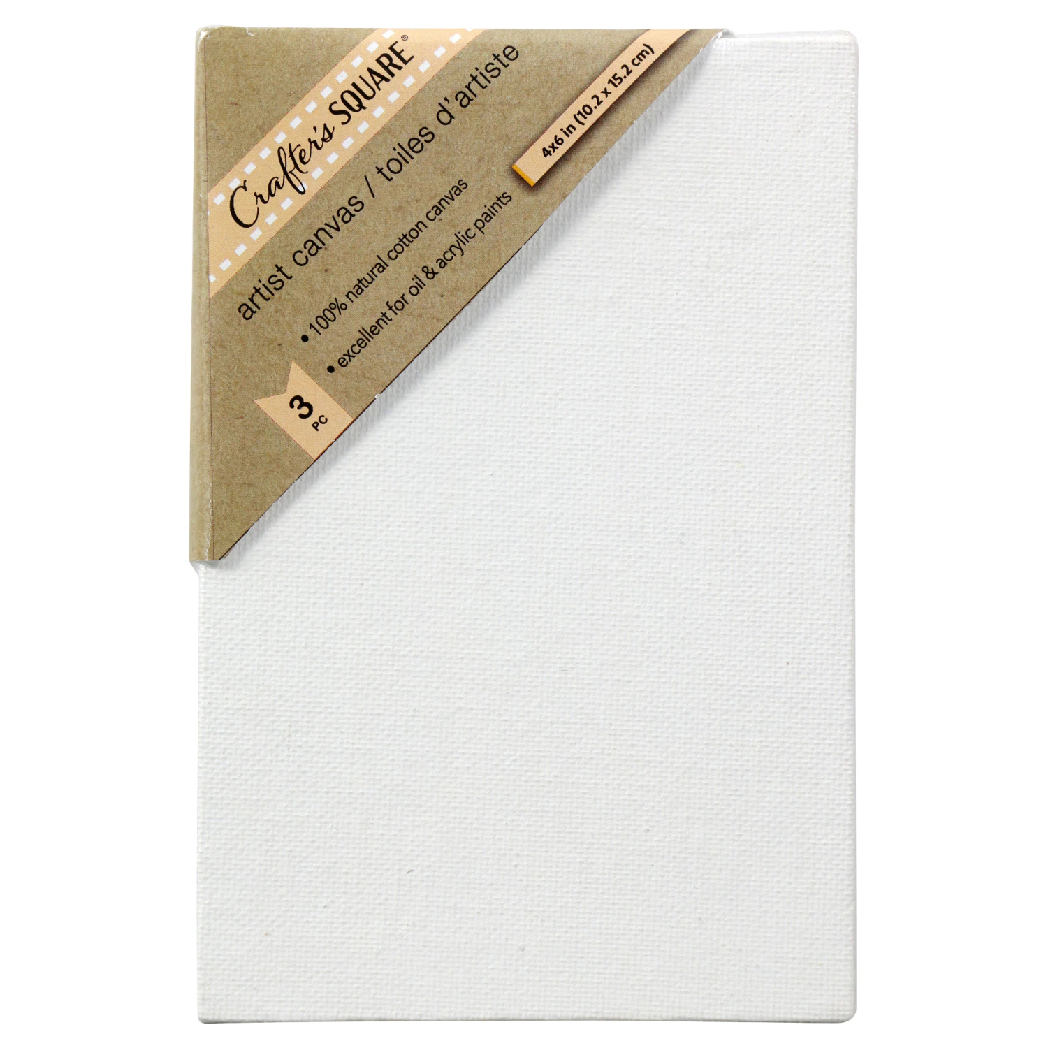 Assortment Details: 3-ct. Packs of 4×6-in. Crafter’s Square® White Artist Canvases