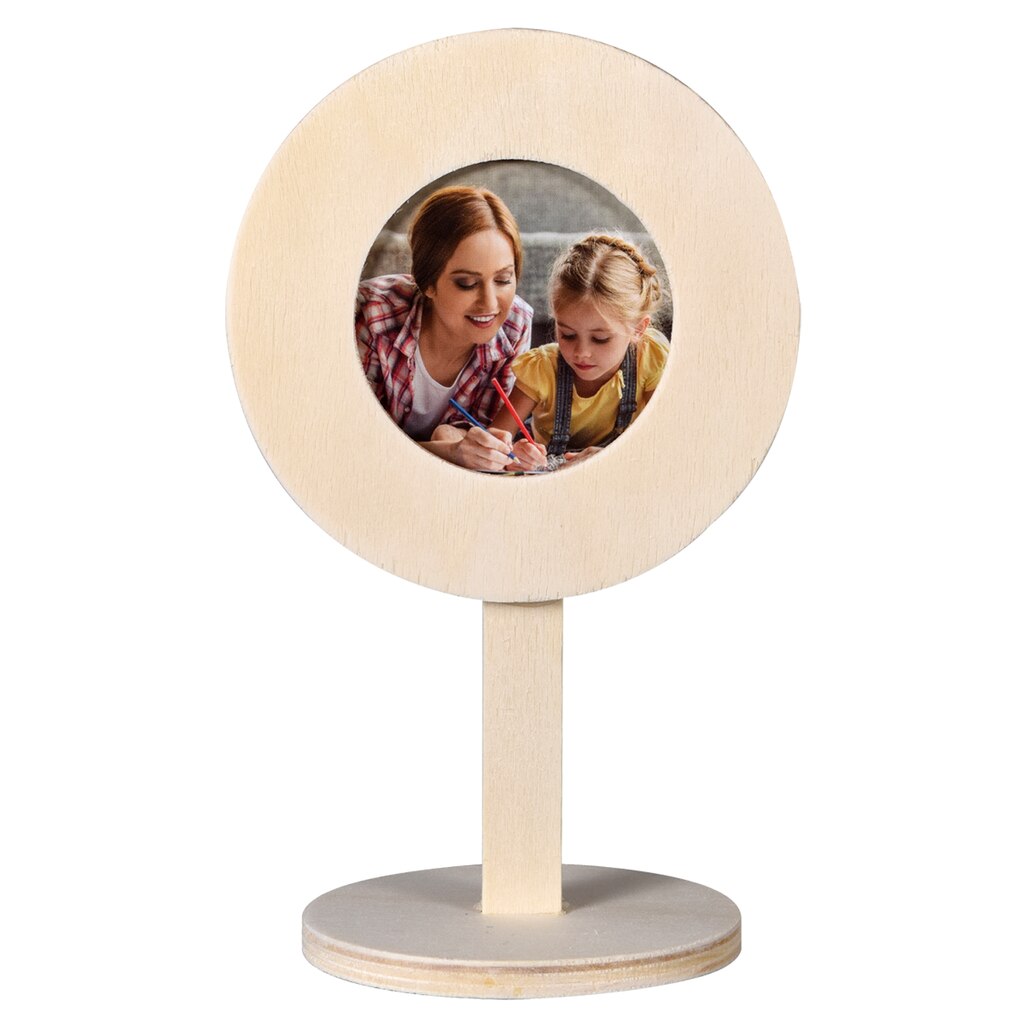 Personalize these frames to show off your loved ones! Assorted among circle, heart, butterfly, and flower shapes, these 6.5×4-in. frames hold small circular photos. Each frame comes in a natural wooden color so they’re perfect for decorating with paint, markers, glitter, and gems. Great for family paint nights, crafts at school, DIY home decor, and more!