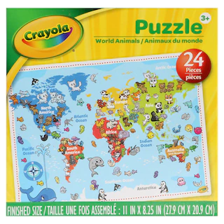 Assortment Details: Crayola® Boxed Puzzles is 11×8.5-in finished and is assorted among lambs, koalas, deer, and numbers. Ages 3+