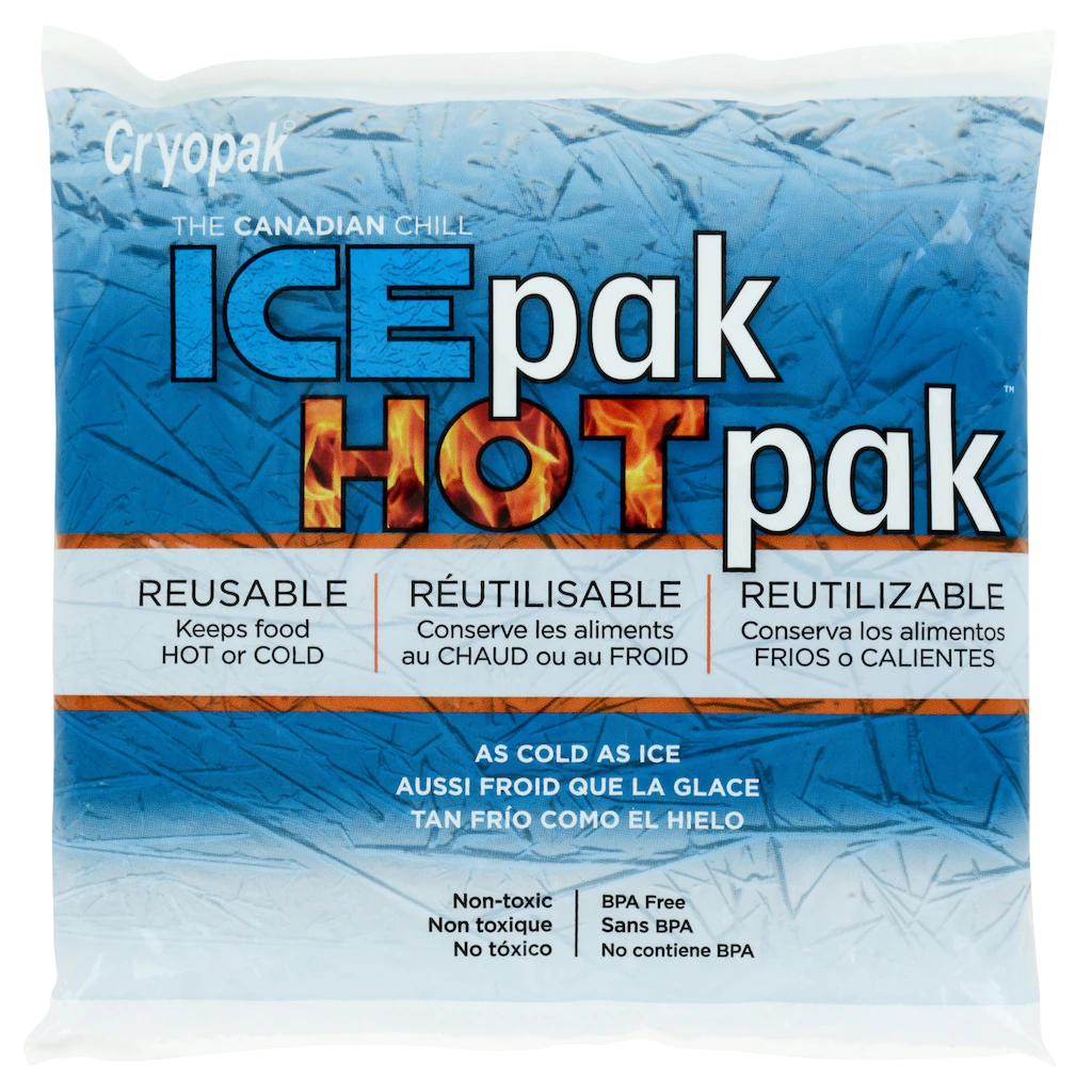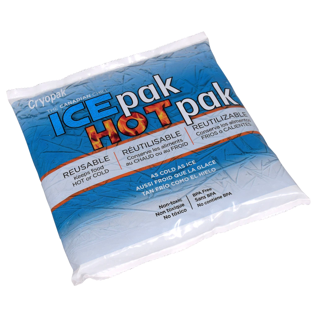 Cryopak® Ice Pak, Hot Pak resusable packs are what you need to keep food hot or cold. When using them to keep food cold, you just freeze them and put them into the cooler or container with your food and these packs remain as cold as ice. They are reusable, non-toxic, and BPA free so you can be confident in using these when packing them with items for your family. When using them to keep food warm, be sure that they are at room temperature when placed in container with hot food. It insulates and helps keep the food hot.