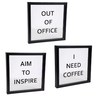 There’s nothing like a good laugh to get inspired at the office! These decorative plaques offer 3 unique sayings that will not only look good on your work desk or table, but they will remind you that work can also be fun. Perfect for home offices, corporate offices, and small businesses.