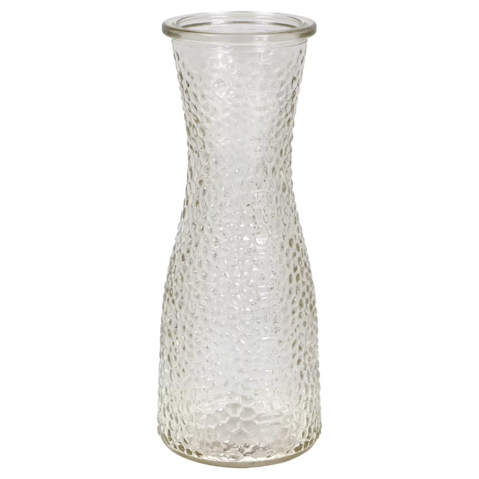 Have beautiful flower arrangements or create exquisite pieces of decor with the help of these dimpled glass vases. They are 9-in. tall and 3.5-in. in Dia. Perfect for all occasions: everyday use or special holidays included. The dimpled glass gives the space it occupies pizzazz!
