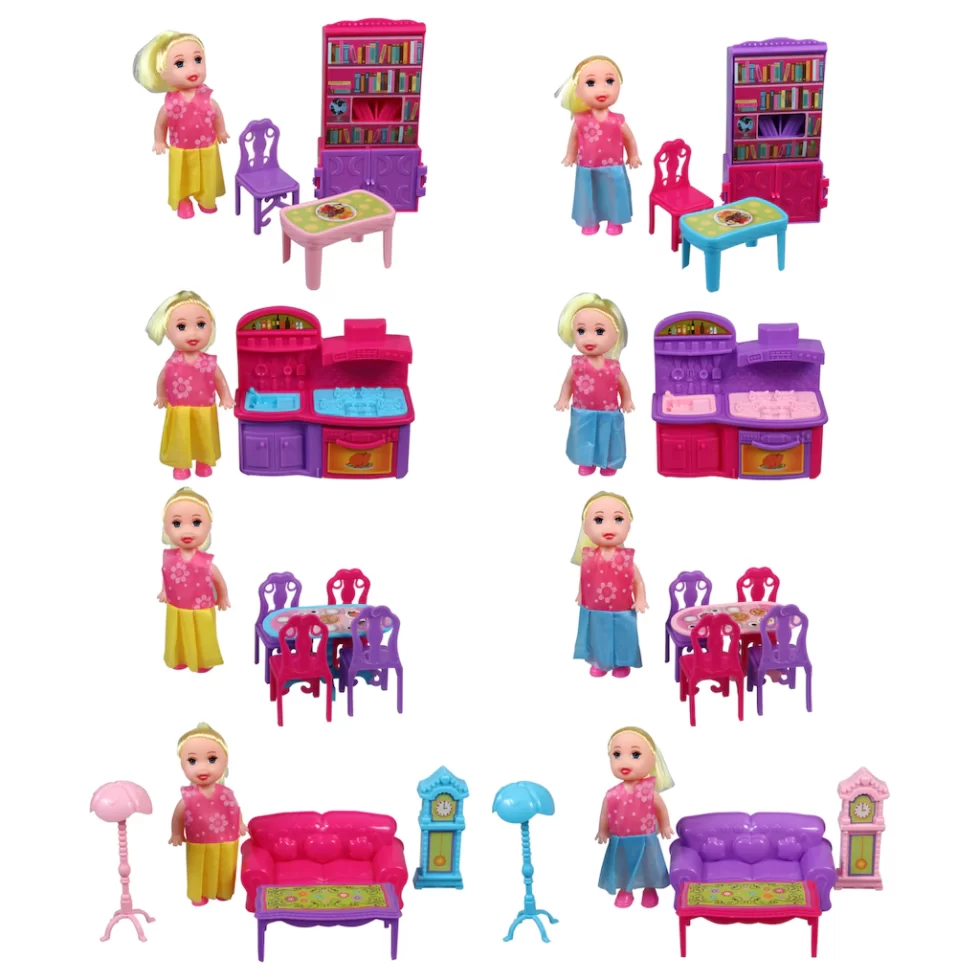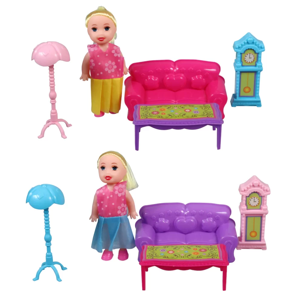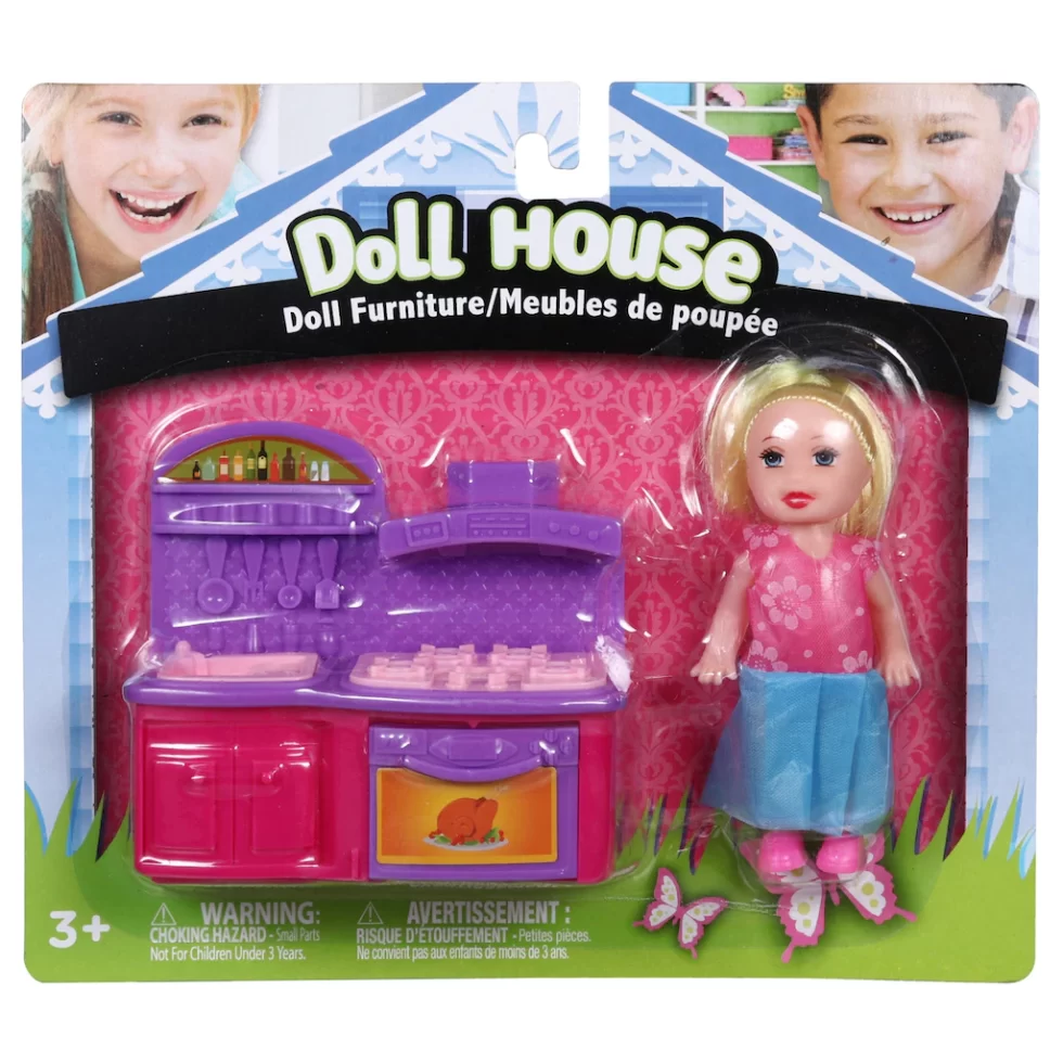 Let the kids play house with great accessories like these furniture pieces. They’re all made of plastic and come assorted among the 8 pack designs shown, plus, each pack includes it’s own little doll. Great for solitary play, enjoying time with friends, gift giving, and for use in day care centers or kids camps. Ages 3+.