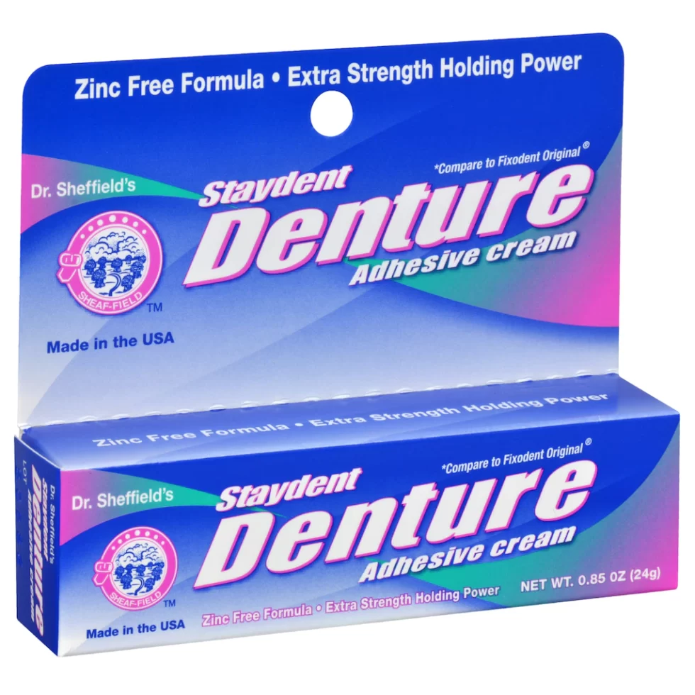 Assortment Details: 0.85-oz. Tubes of Dr. Sheffield’s Staydent Denture Adhesive Cream
