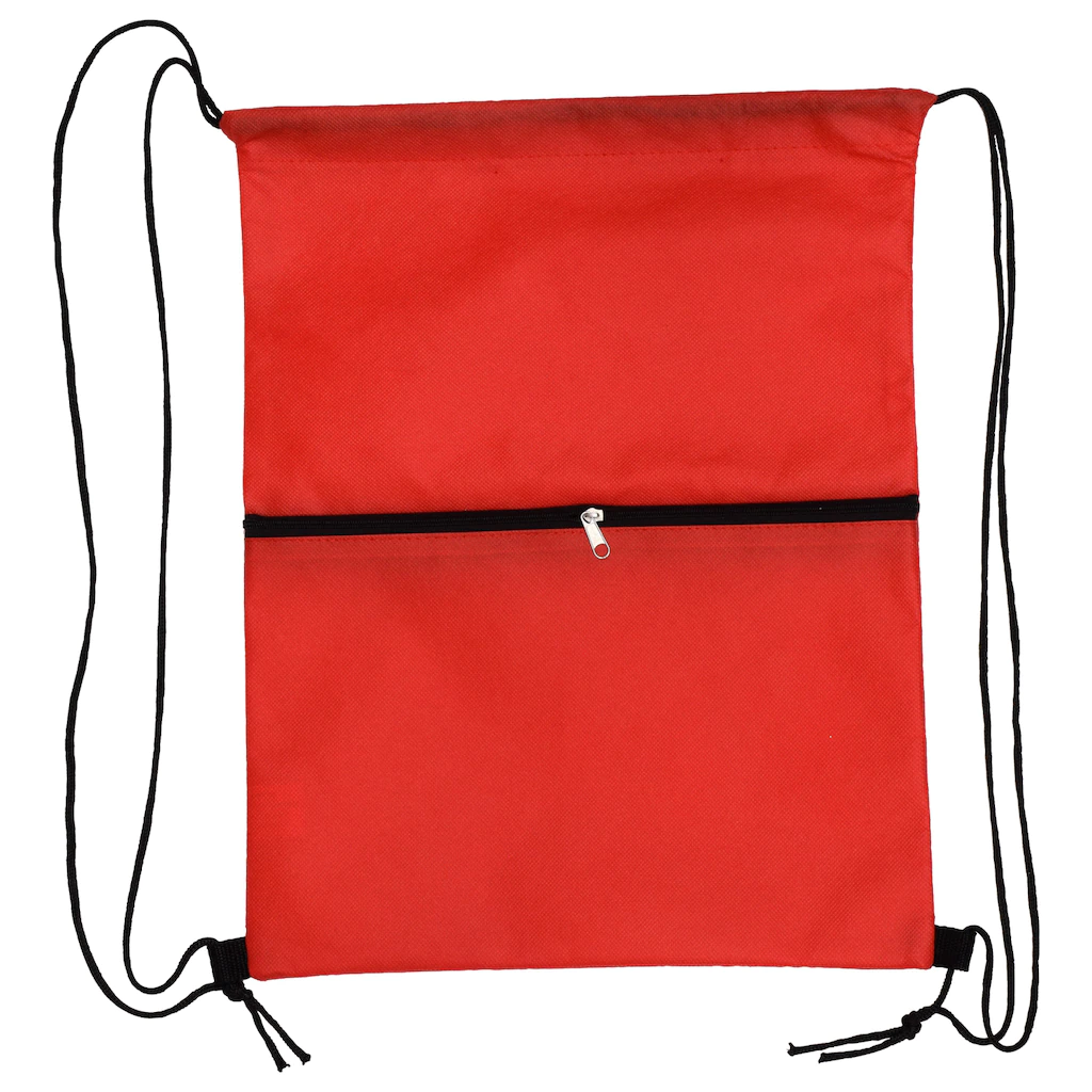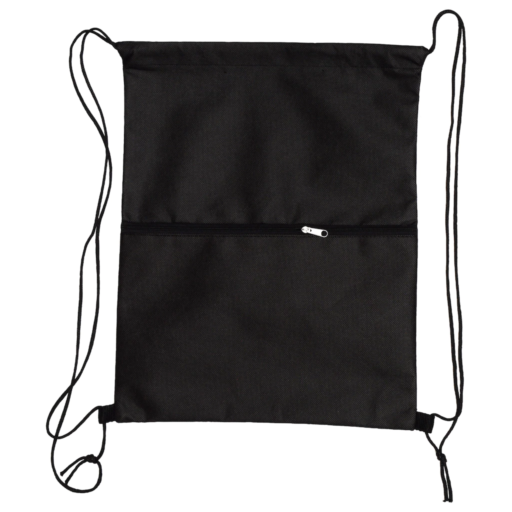Drawstring Backpacks with Zipper Pockets, 17×13 in.