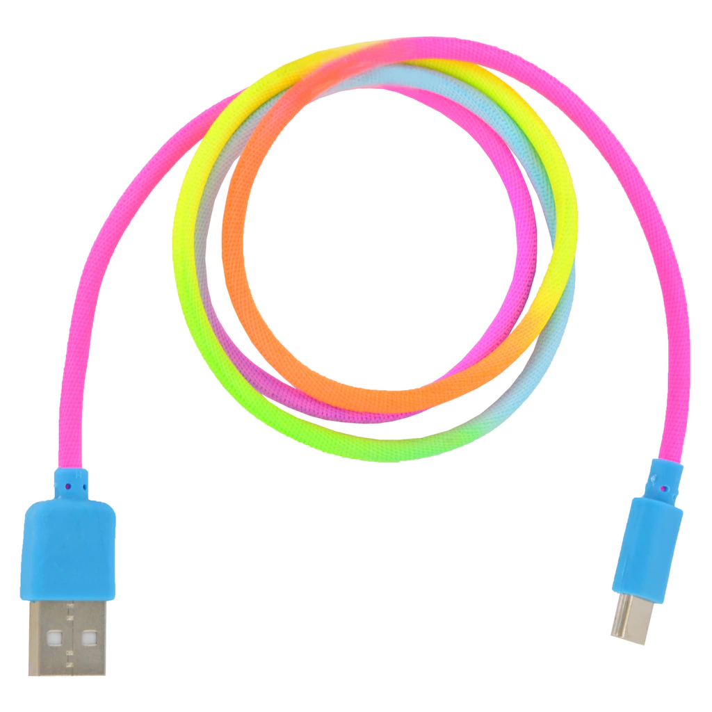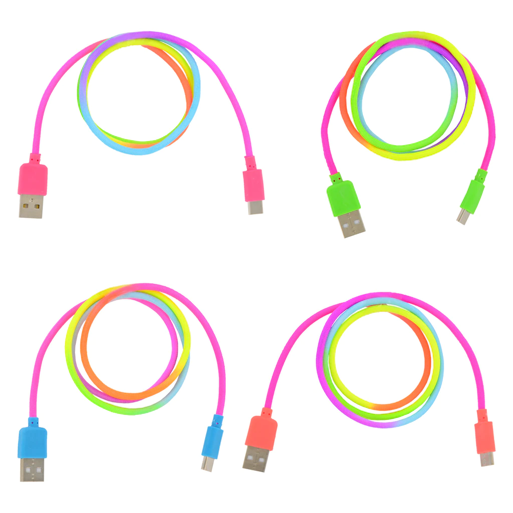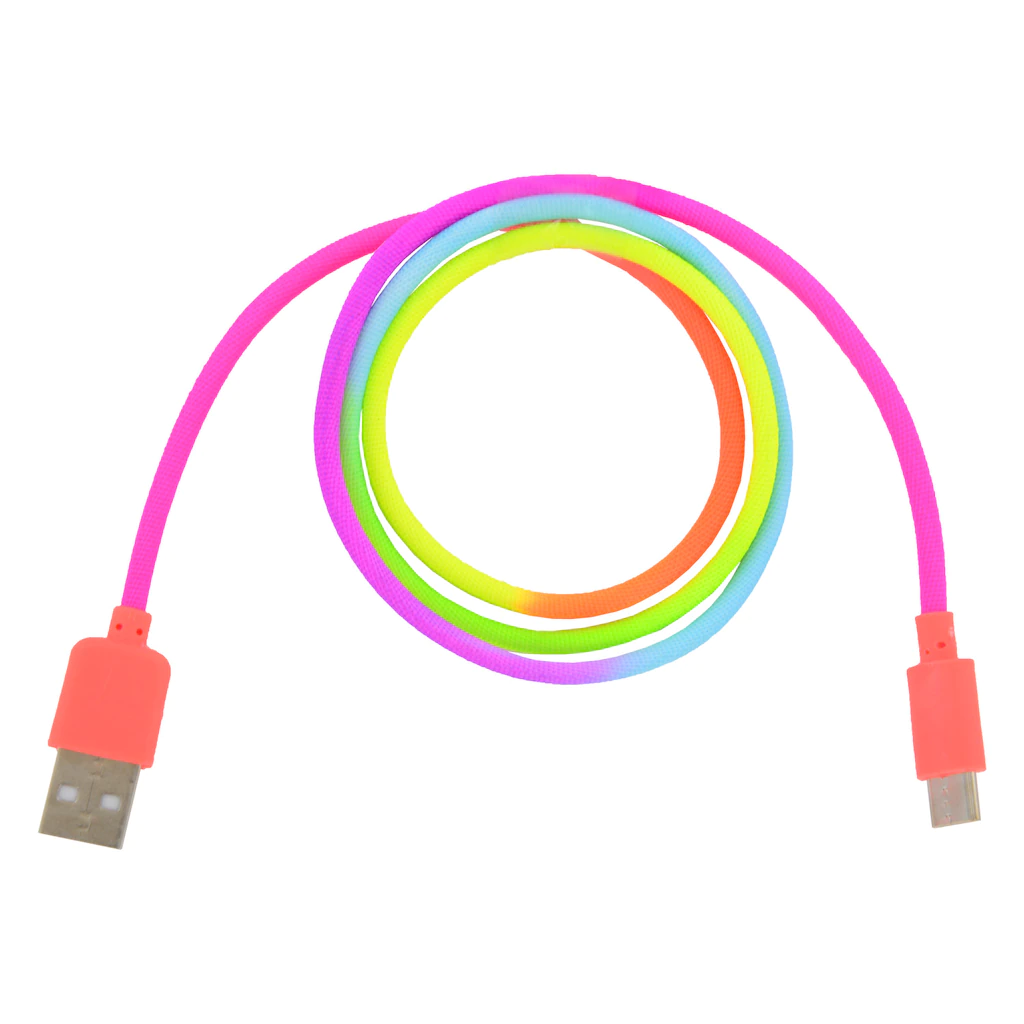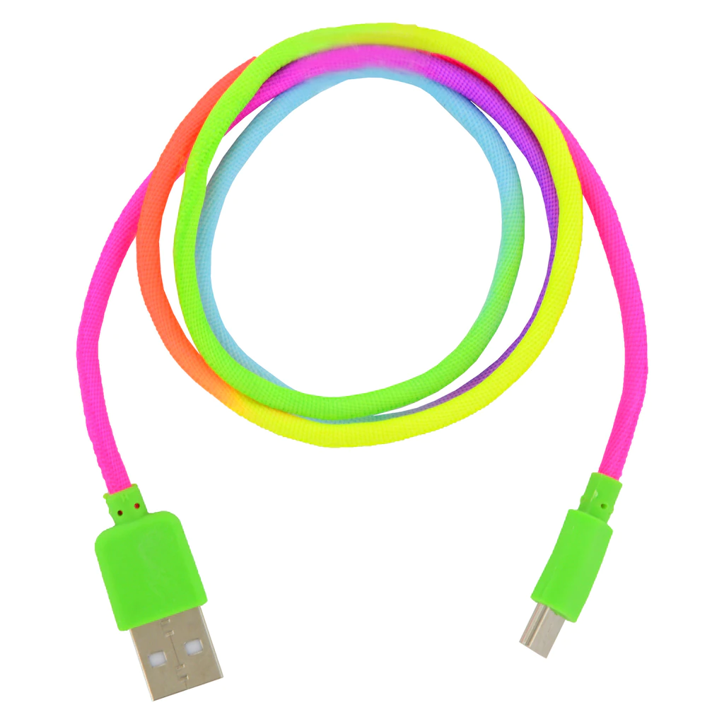 These are multi-colored cords with mirco USB cables. They accomplish high speed charging and data transfer. These cords are assorted among 4 color combinations as shown. They each include green, blue, red, and pink neon colors. Ideal for purchases to have in every room at home, in every car, and at work.