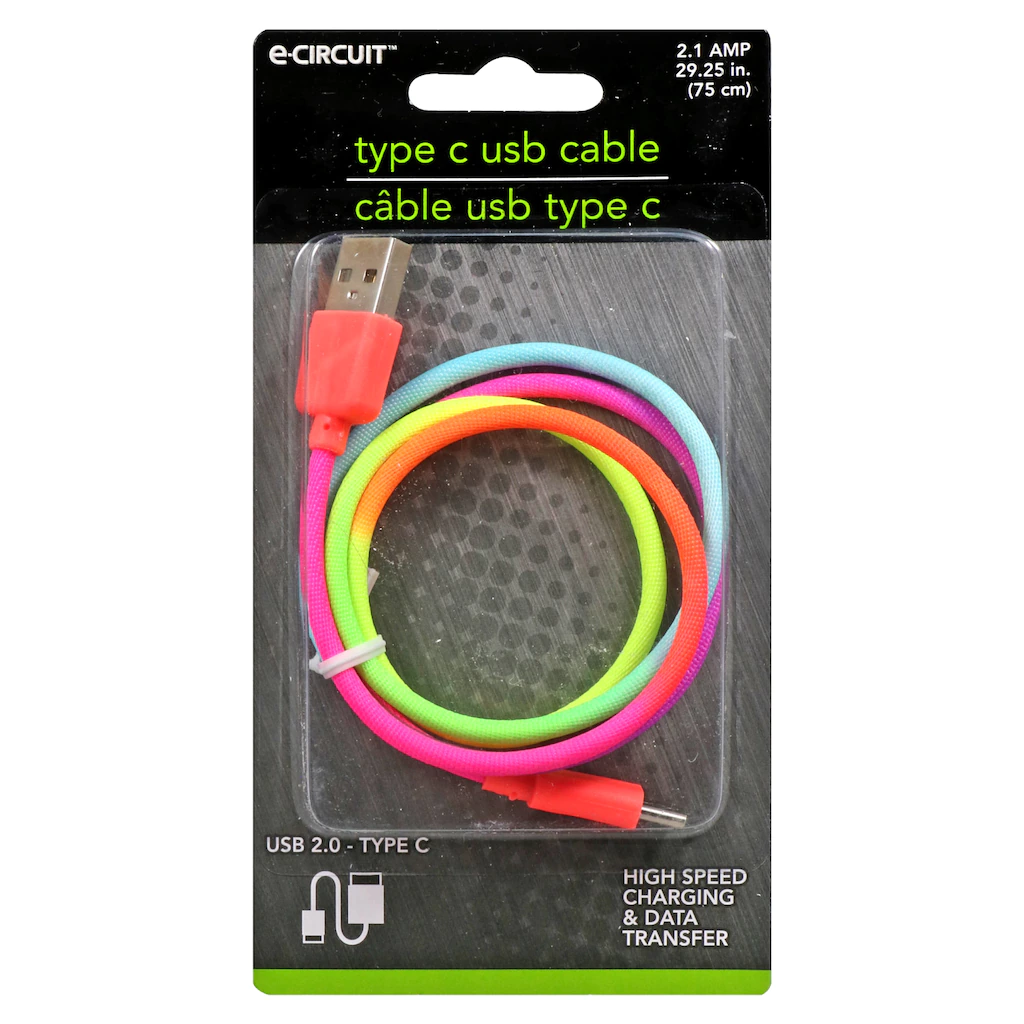 Assortment Details: 29.25-in. E-Circuit Type C USB Cables assorted among the four styles shown