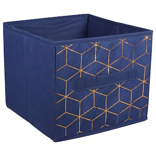 Organize your space with these Essentials™ Geometric Collapsible Storage Containers with Handles! Assorted between gray or navy blue solid colors, each bin has a unique gold geometric pattern on the front. These fully collapsible containers measure 9x9x8-in. and have sewn-in fabric handles for easy moving. Ideal for closets, dorm rooms, bedrooms, and desks!