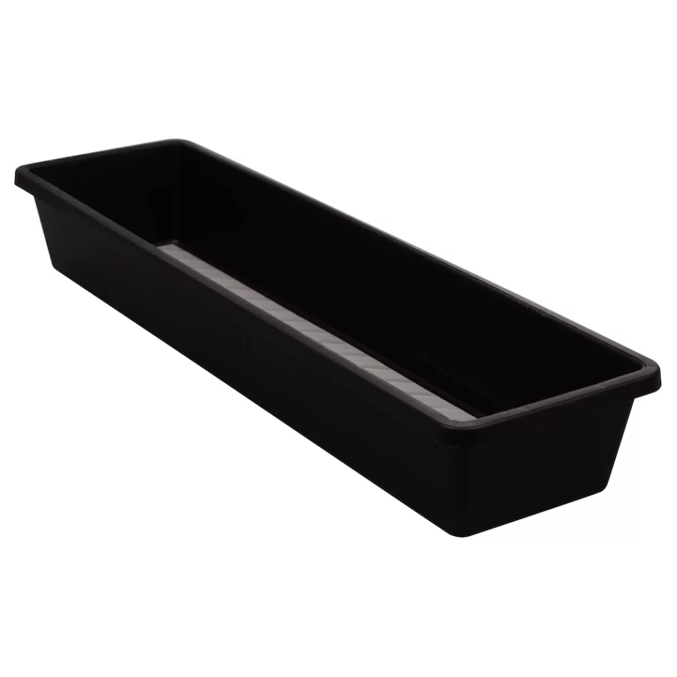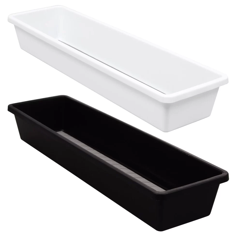 Assortment Details: 13.5×3.75×2-in. Essentials™ Large Rectangular Drawer Organizers assorted between black and white