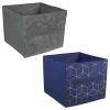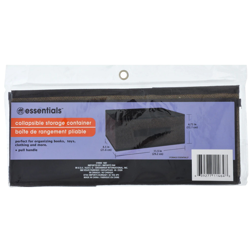 Ready to reorganize your living room or closet? Get started with these Essentials™ navy blue, fully collapsible storage containers. Each container is 11.5-in. long, 8.5-in. wide, and 4.75-in. tall. With stitched handles for easy access, these storage containers are great for closets, shelving units, under the bed, or anywhere that you need extra storage!
