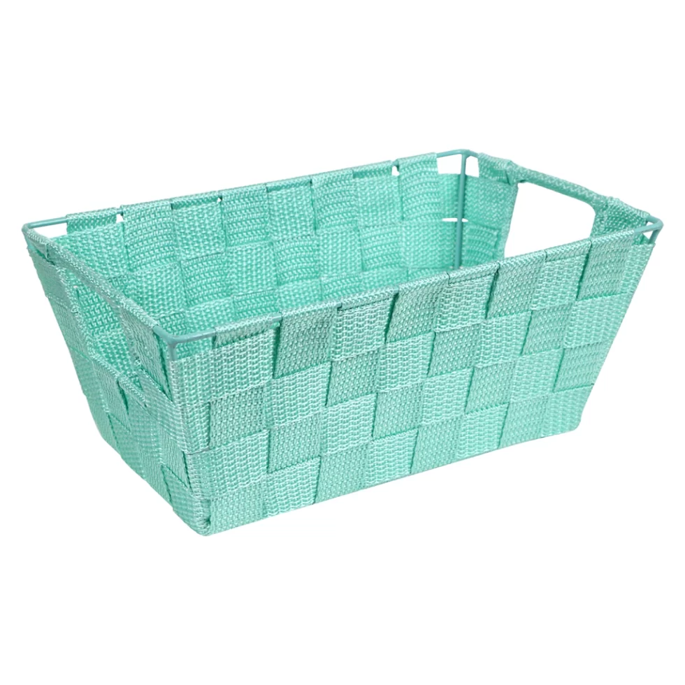 How many ways will you plug these Essentials woven baskets with handles into your home and owrk place? They are perfect for organizing so many spaces, making things easy to find and readily available, but they are also an attractive solution. They measure 10×6.125×4.375-in. and are assorted between mint and navy blue.