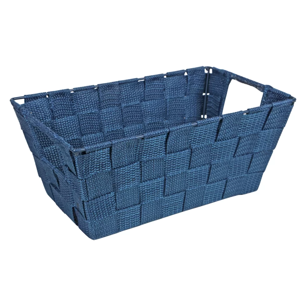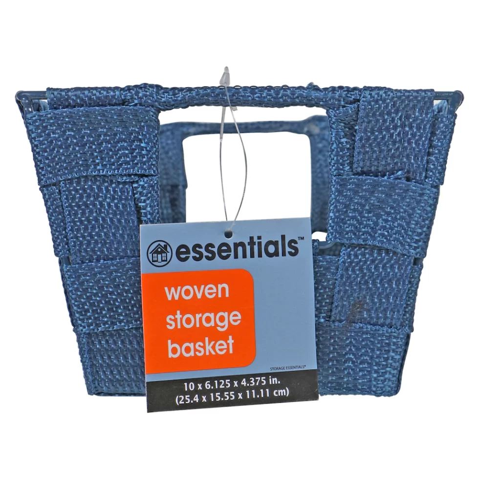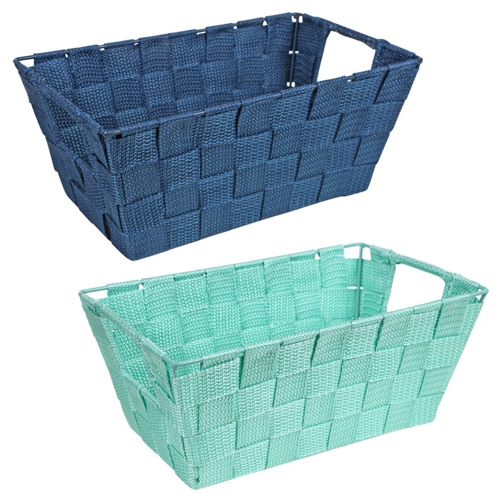 Assortment Details: 10×6.125×4.375-in. Essentials™ Woven Strap Baskets with Handles assorted between navy and mint