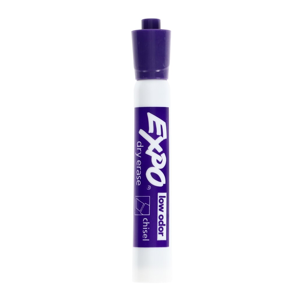 Assortment Details: Expo Dry Erase Chisel Markers in Fashion Colors assorted among orange, plum, turquoise, Red, lt. green, and blue.
