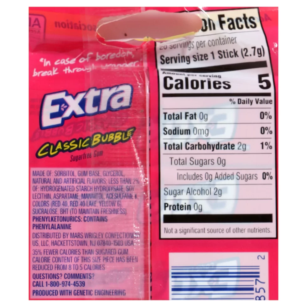 Assortment Details: 4-ct. Packs of Extra® Classic Bubble Sugarfree Gum