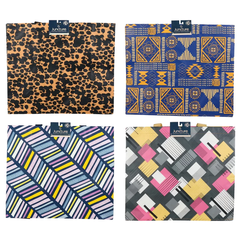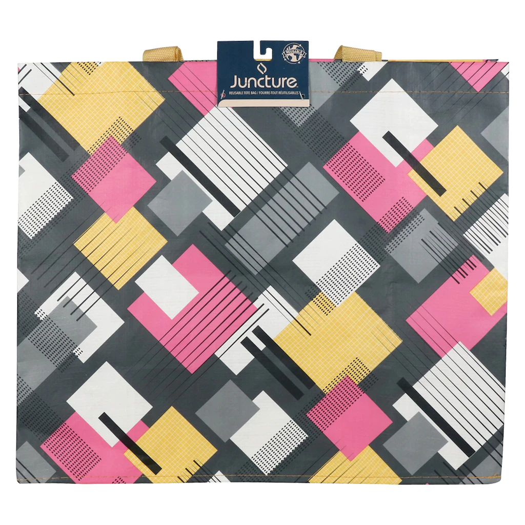 Get a ton of use out of these polypropylene tote bags. They’re reusable and very pretty: they inspire you to take them everywhere and are large enough to carry a wide assortment of things. These extra large 13.75×15.75×7.375-in. totes come assorted among the 4 designs shown. Great for carrying groceries, gym clothes, school books, office supplies, stuffed animals, tools, you name it.