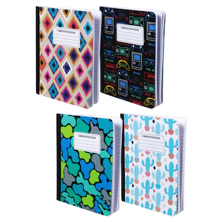 Assortment Details: 9.75×7.5-in. Fashion Composition Notebooks assorted among the 4 cover designs shown. Cover art may vary.