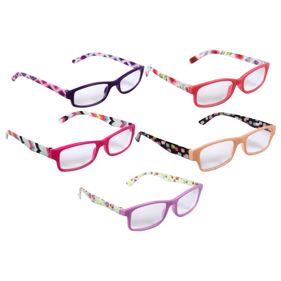 Enjoy the celebrated colors represented in our fashion readers with 1.50 magnification strength! They have fashion color frames and coordinating patterns on the temples. Coordinate every outfit and leave a pair anywhere you may need them: in the living room, the kitchen, the bathroom, the bedroom, the craft or sewing room, in your desk at work, and in your car. Bring a few into meetings for those who’ve forgotten or lost their glasses. Add them to care packages or donate directly to shelters.