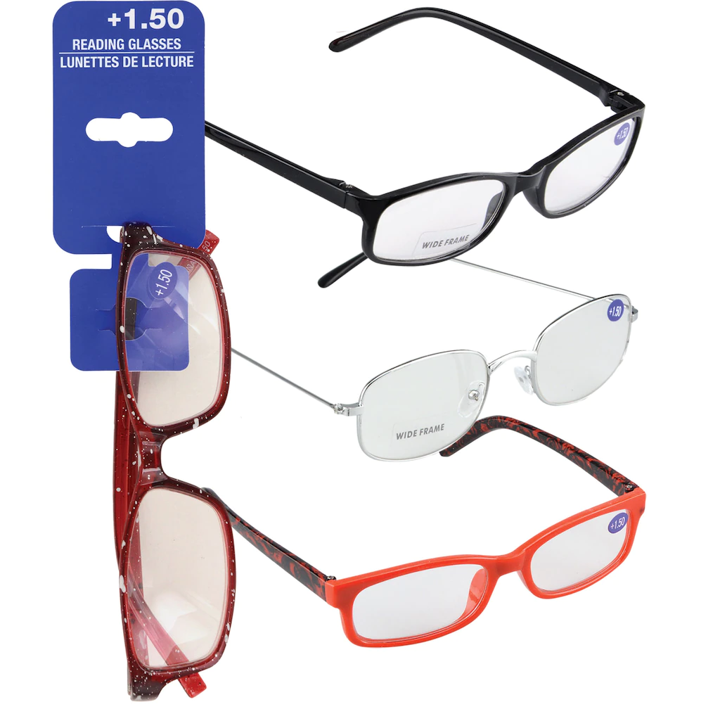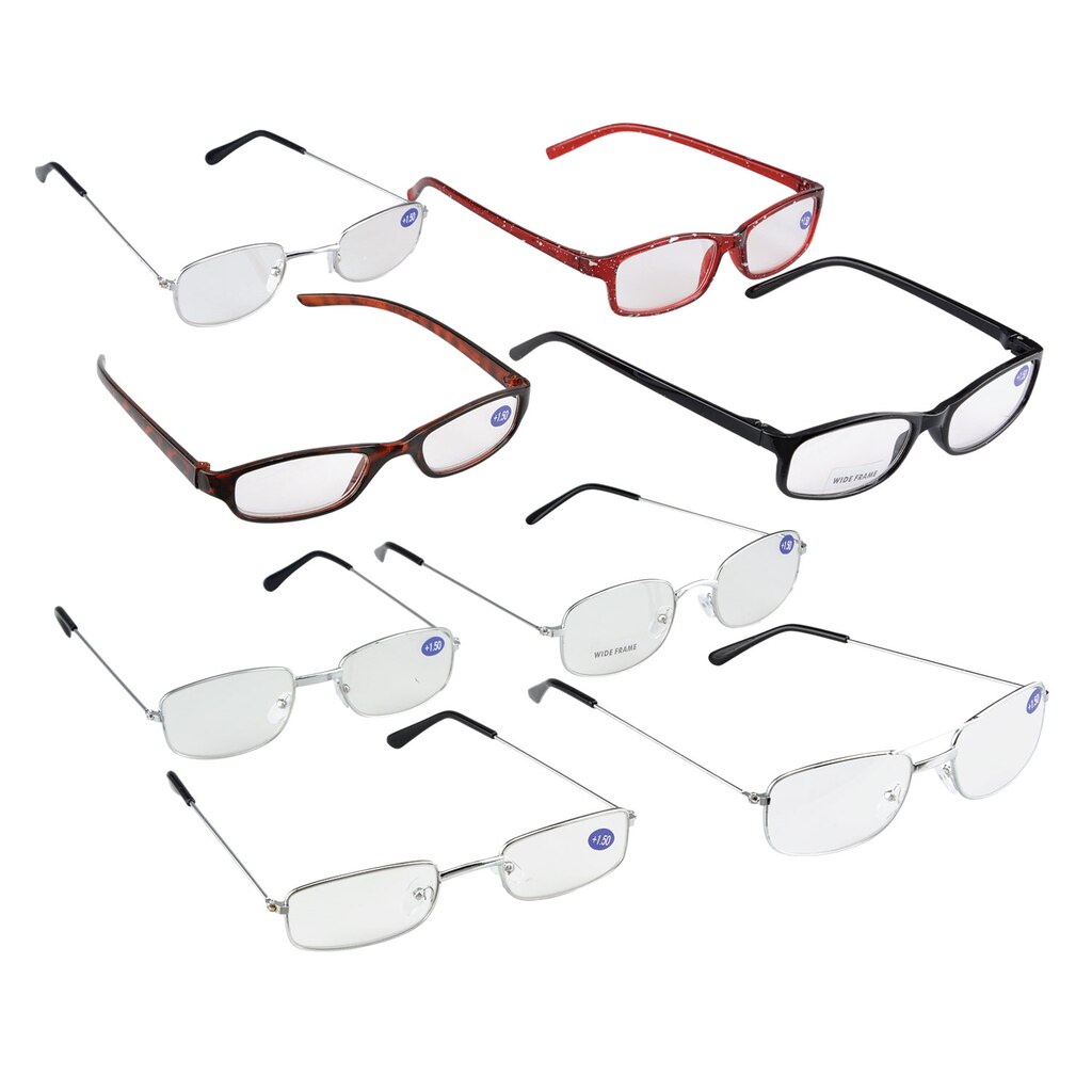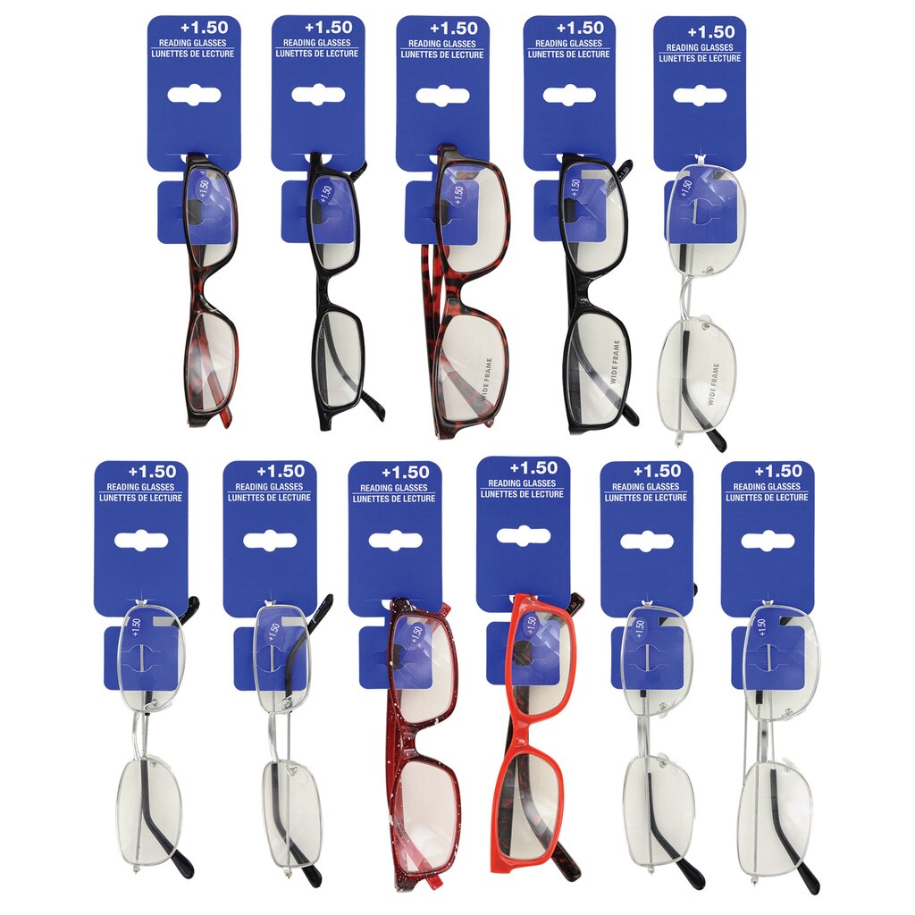 Having trouble reading small print in books, magazines, and newspapers? Save yourself the headache with this assortment of fashionable reading glasses. Each pair magnifies at a +1.50 diopter. Perfect for the perpetual and occasional reader, these are also great resale items.