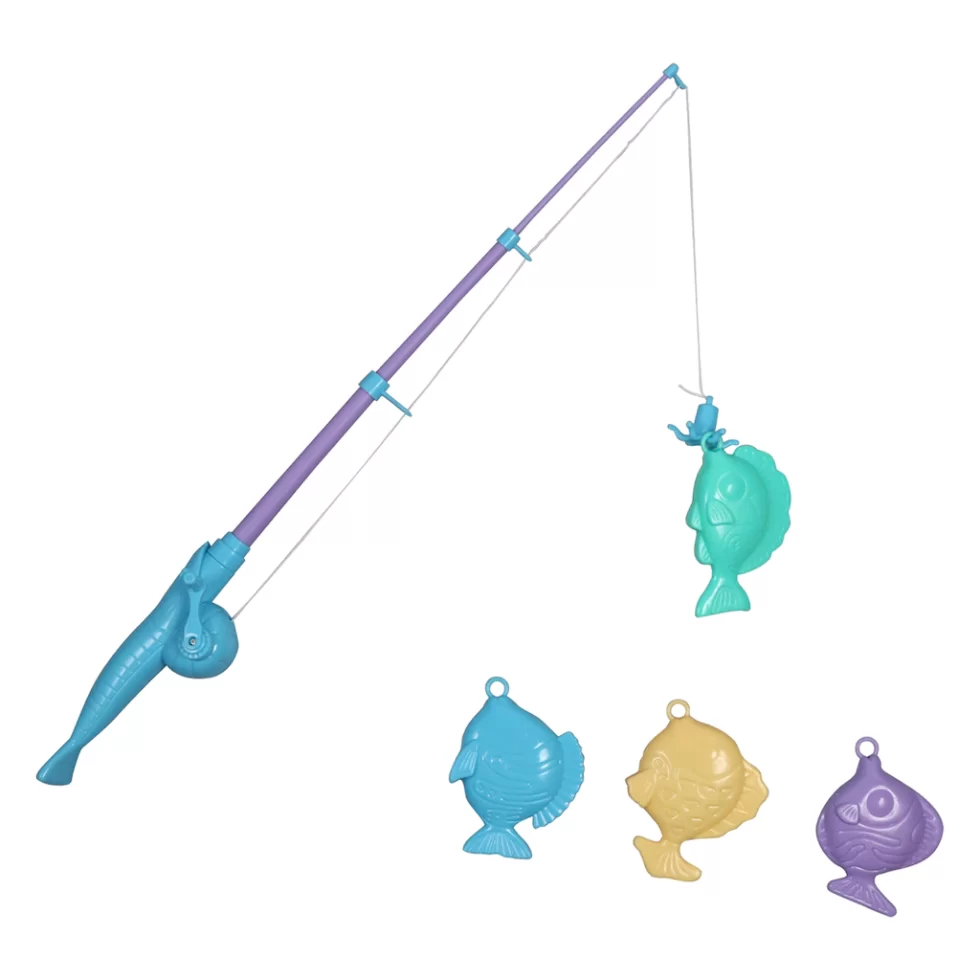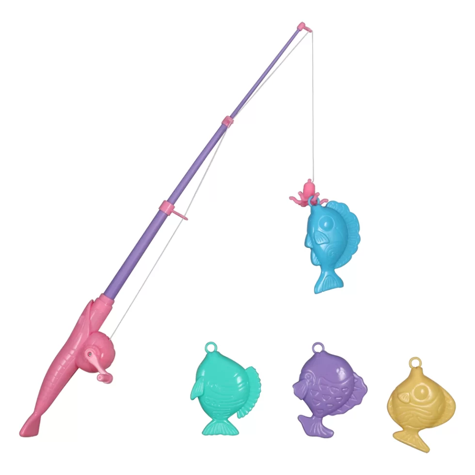 Assortment Details: 18×2-in. Fishing Game Sets with Four Fish assorted between pink and purple fishing poles or blue and purple fishing poles. Ages 3+.