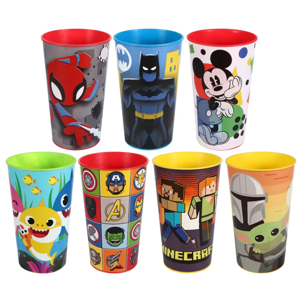 The kids will love enjoying their favorite beverages from cups decorated with their favorite cartoon friends! Each cup assortment has lovable cartoon characters and holds an ample 22-oz. of water, juice, soda, and more. Designs are assorted among Marvel® Spider-Man™, DC Comics® Batman™, Disney® Mickey Mouse, Disney® Mandelorian, Baby Shark, Marvel® Avengers Assemble™, and Minecraft. They make perfect party favors, gifts, stocking stuffers, and classroom giveaways. Assortment may vary.