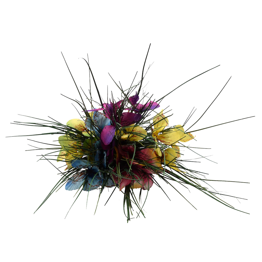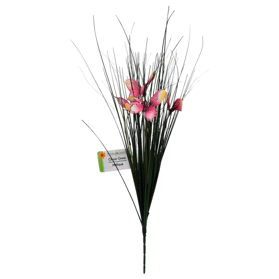 A new twist on artificial floral! Beautiful bushes of tall onion grass have small fabric butterflies nestled within the blades of grass. They make lovely additions to floral arrangements and centerpieces. Also, 20×5.25-in. bushes make great resale items in floral shops, gift shops, and arts and crafts stores.