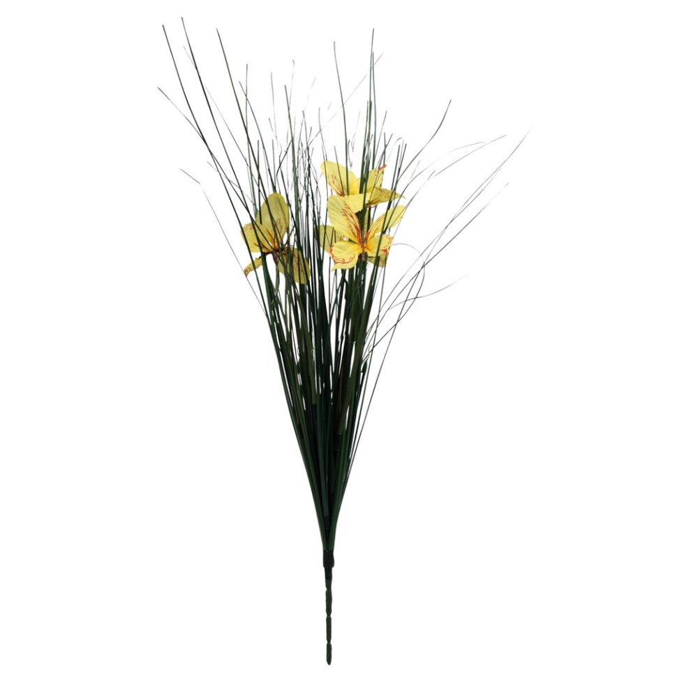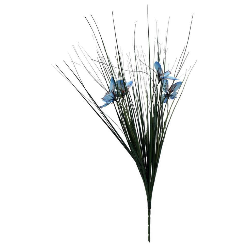 Floral Garden 4-Stem Onion Grass Bushes with Fabric Butterflies, 20×5.25 in.