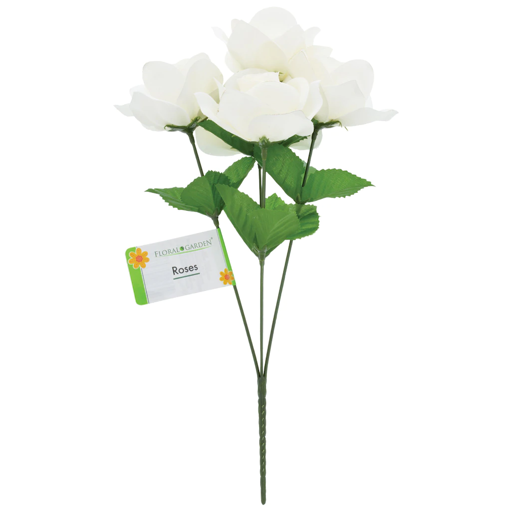 Floral Garden 5-Stem White Velvety Roses, 14 in.