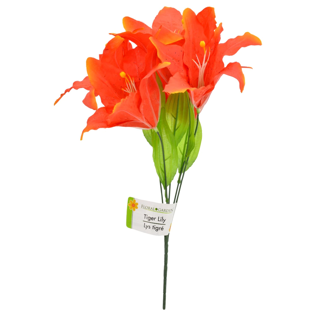 Floral Garden 6-Stem Artificial Tiger Lily Bushes, 15 in.