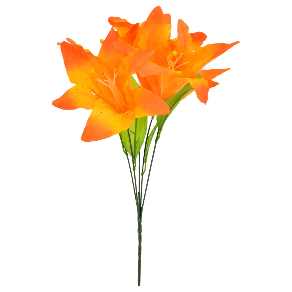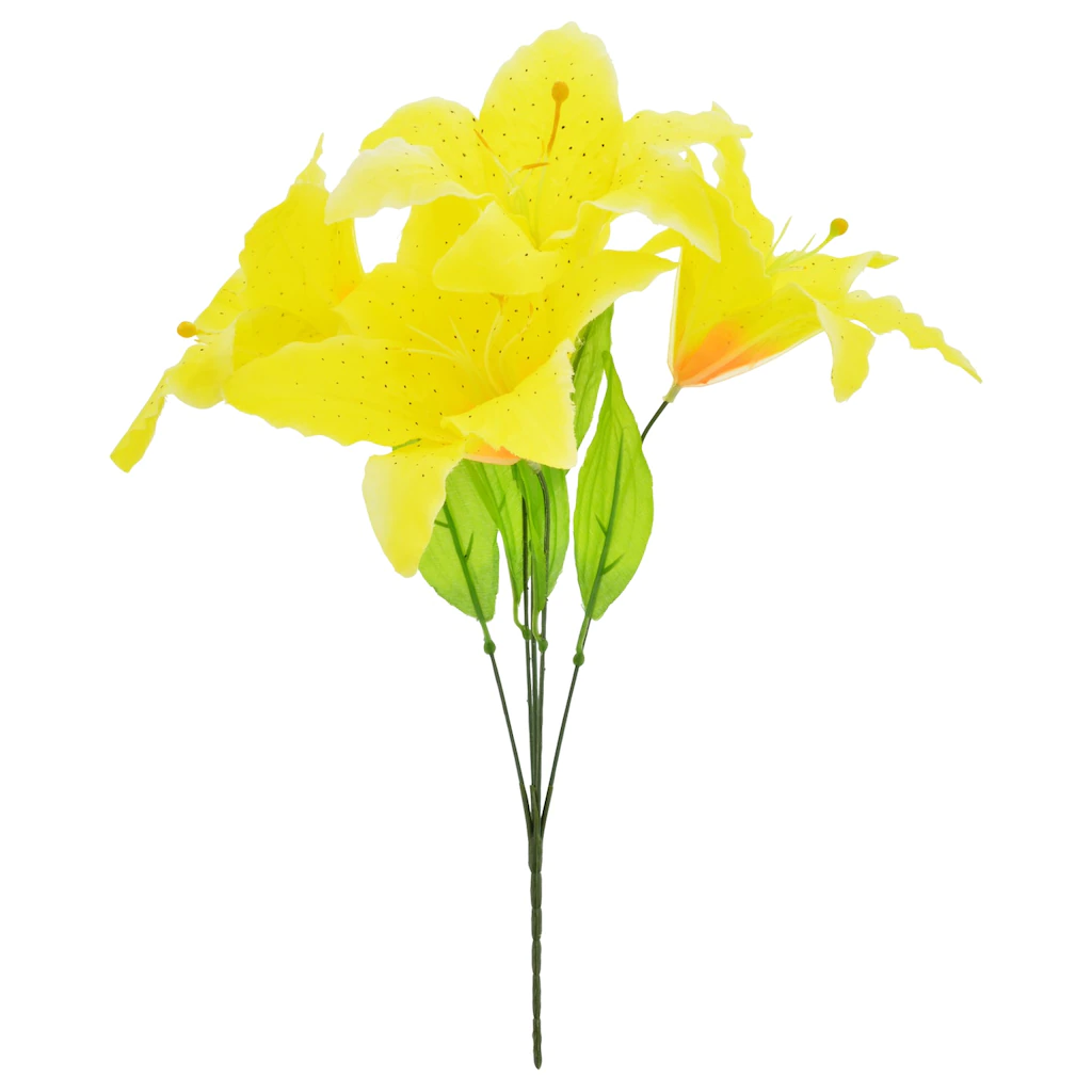 Beautiful, delicate fabric flowers are accented with realistic looking petals and pistils! Tiger Lily bushes come assorted among vibrant hues of orange/yellow, red, white, pink/white, and yellow, making them great for spring and summer floral, decorating, and craft projects.
