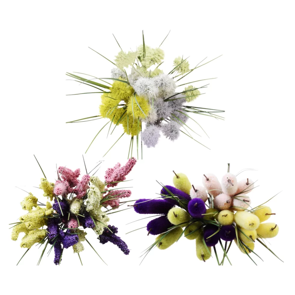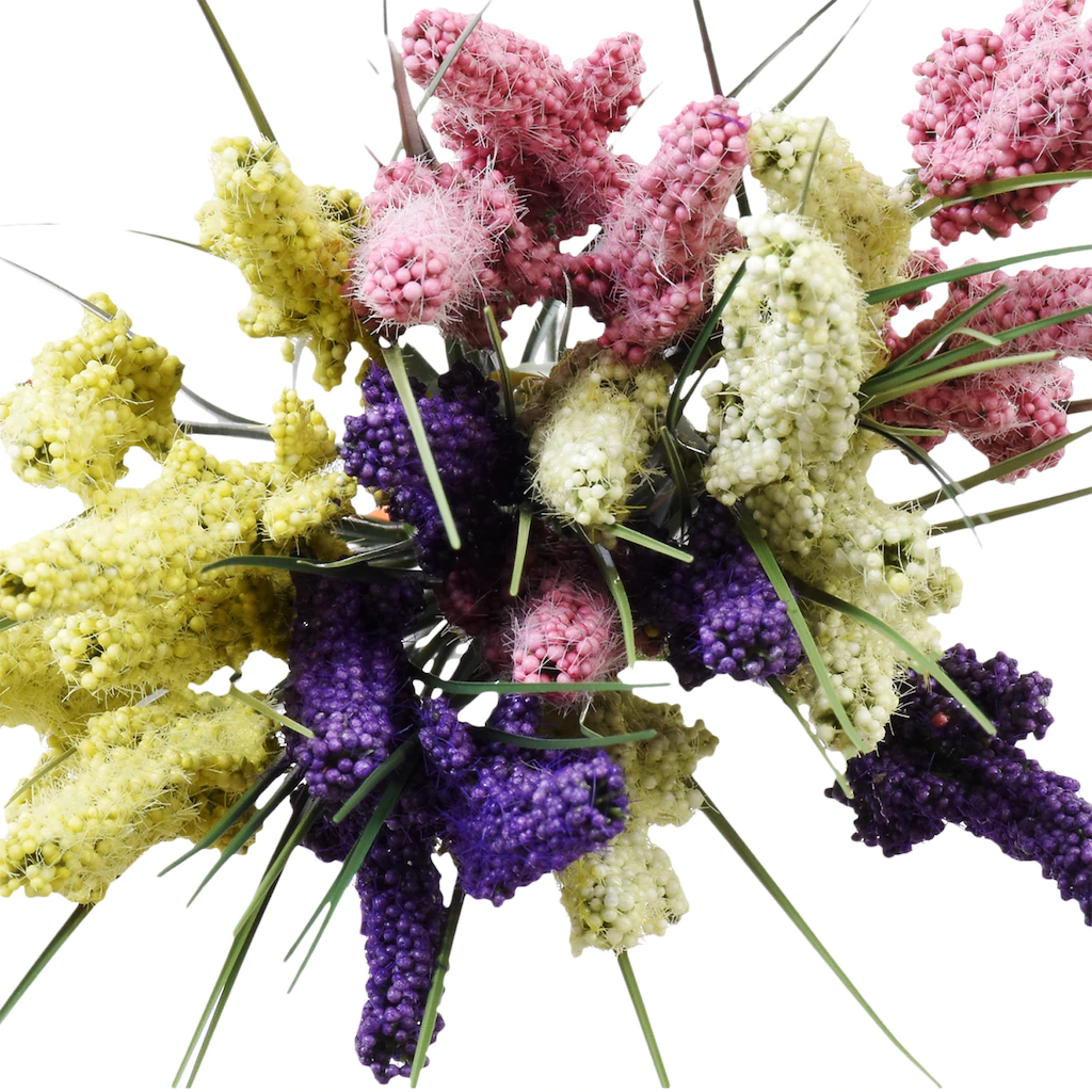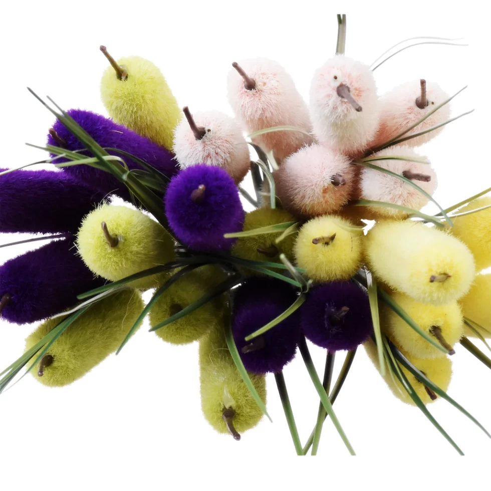Try something new with these dynamic faux cattail flowers. Roses may be classic, and tulips may be cute, but if you want to stand out in your floral decorating abilities then cattails are the way to go. These bushes are assorted between 2 styles and includes 4 colors: violet, white, light pink, and yellow.