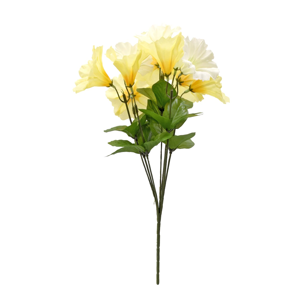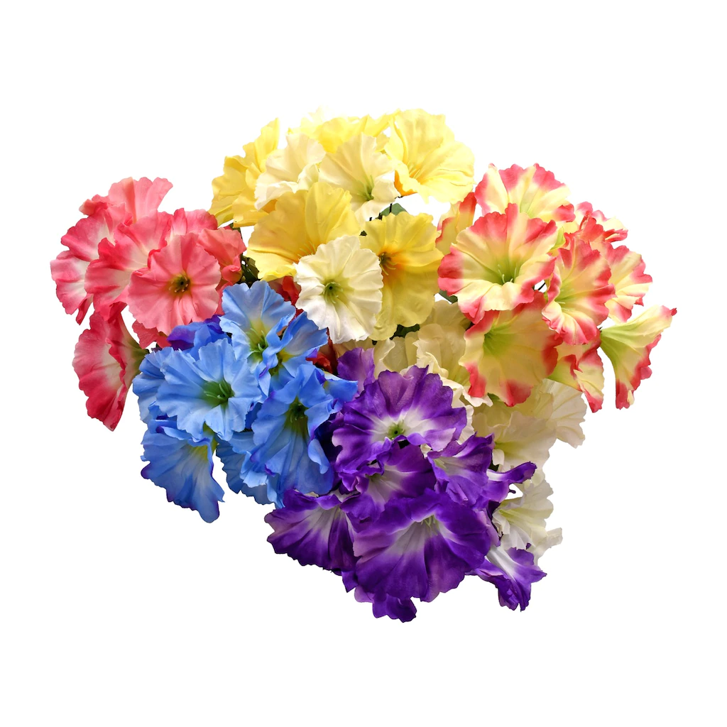 A staple of spring floral arranging, these rich spring-toned poly petunias are just as lovely as their nature-made counterparts! Great for centerpieces, spring decorating and crafting, and floral accents. Plus, wired stems let you bend and shape to suit your needs.