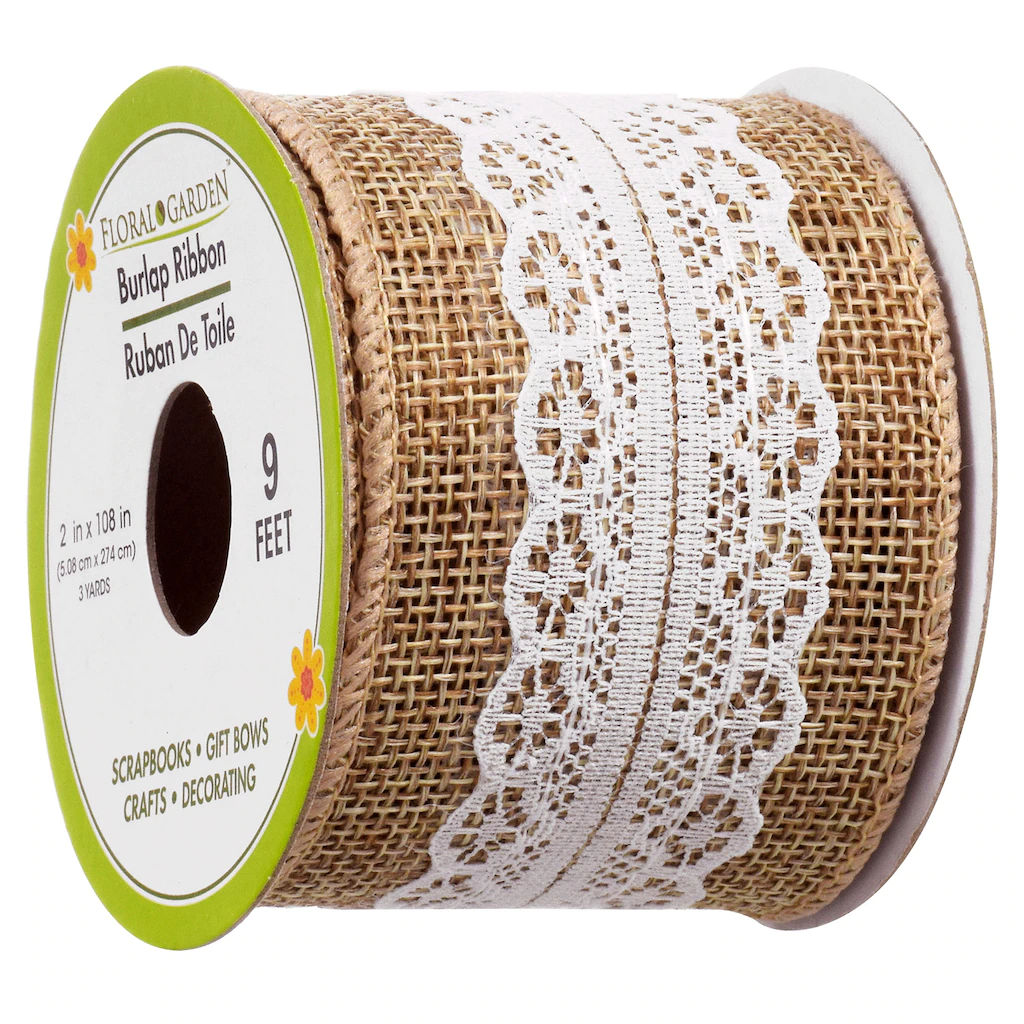 Assortment Details: 3-yd.x2-in. Rolls of Floral Garden® Lacey Burlap Ribbon