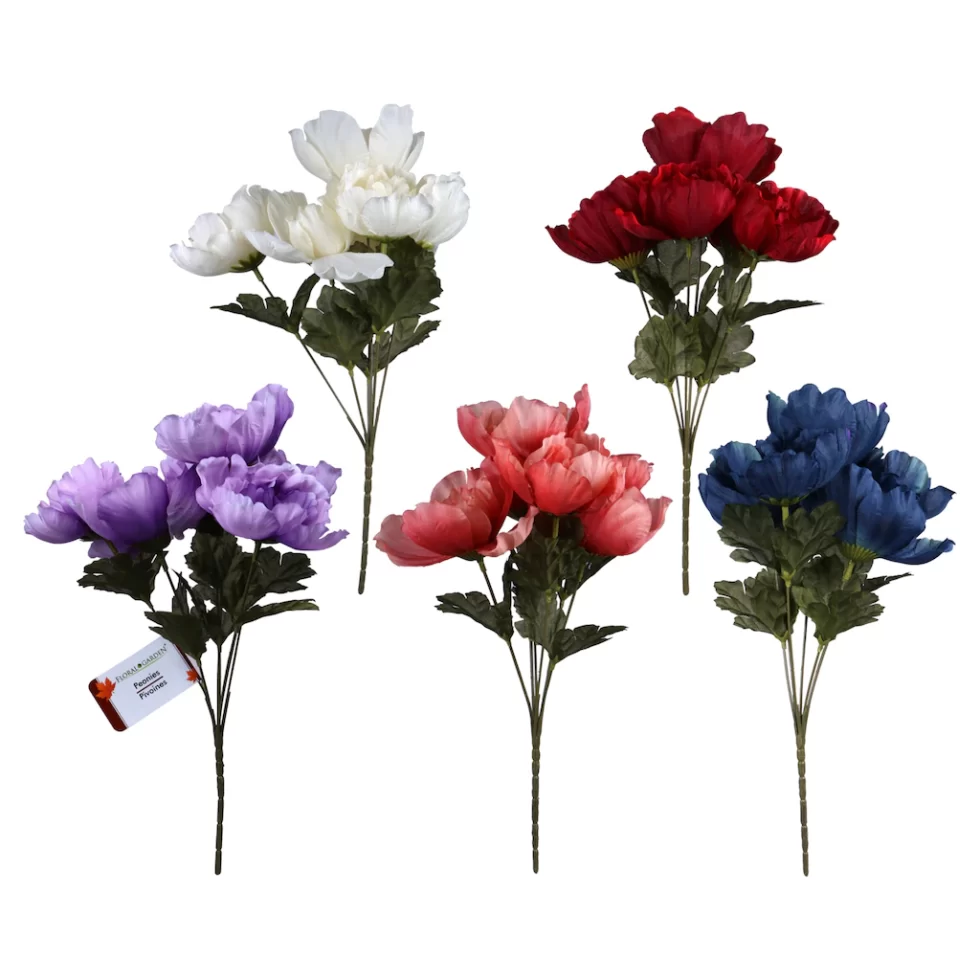 Assortment Details: 14-in. Floral Garden® Modern Fall Peonies assorted among pink, white, blue, purple, and red.