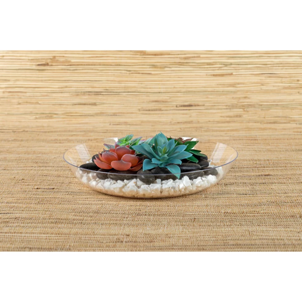 Plant small things like herbs or succulents and give a little liveliness to your space. Each clear plastic garden dish is 9.5-in. Dia. giving you enough space to plant something beautiful. Add colorful rocks or flowers and give it your own personal touch. Dishes are excellent for desks at home, school, and the office, coffee table or dining table decor, holding entryway and waiting room plants, and more.