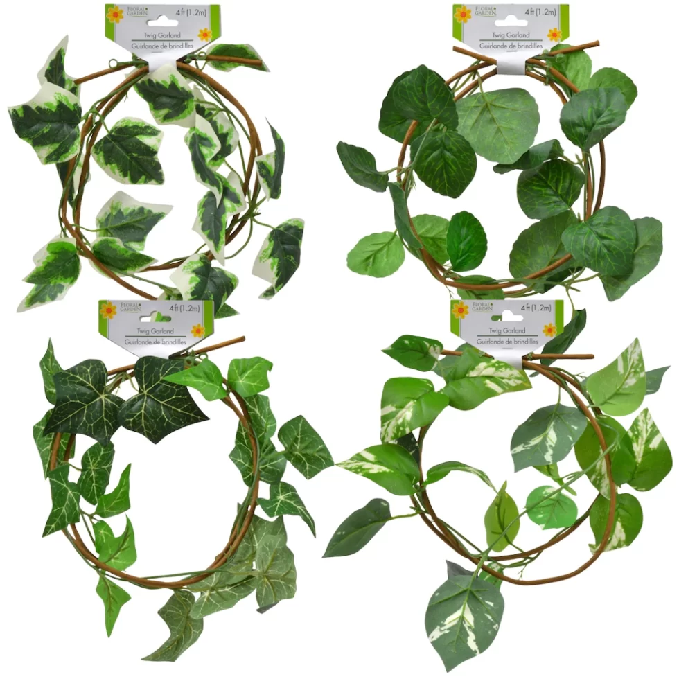 Assortment Details: 4-ft. Floral Garden® Twig Garland Strands assorted among the 4 designs shown