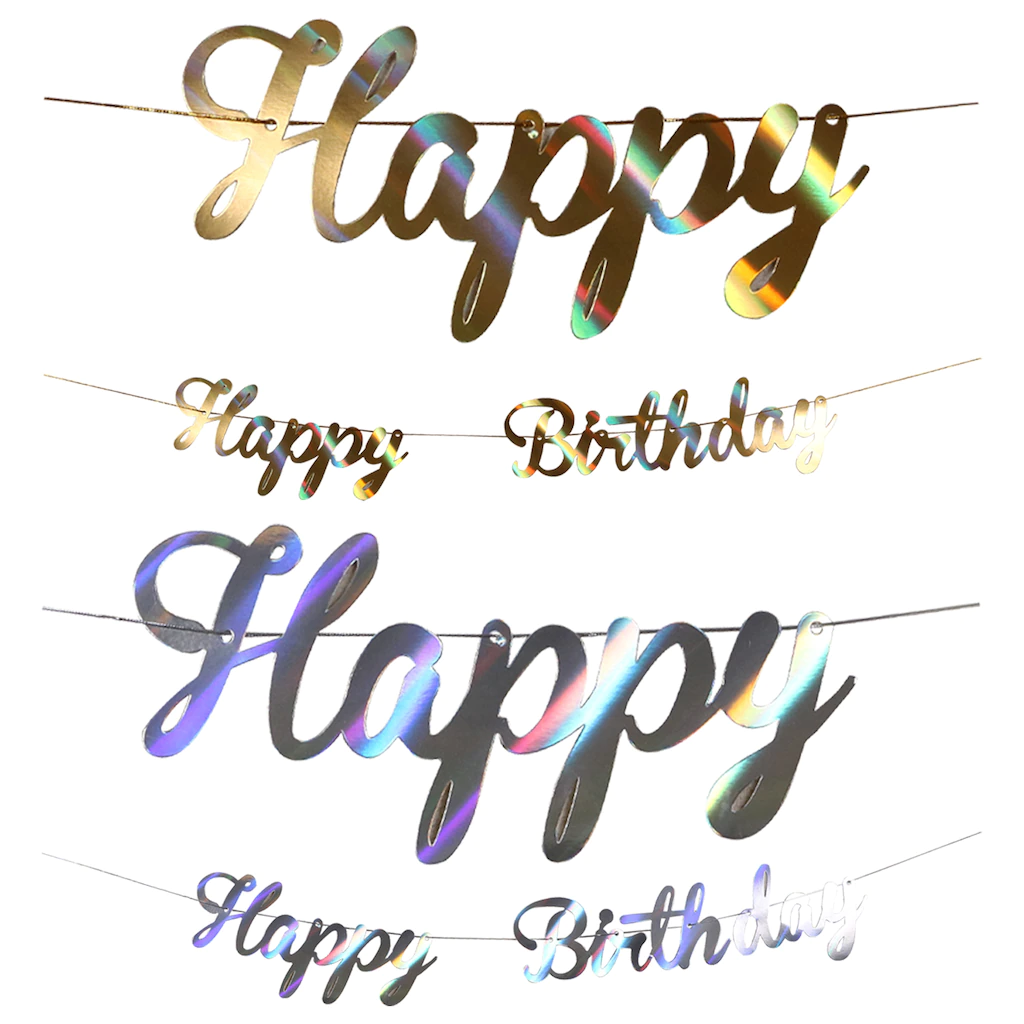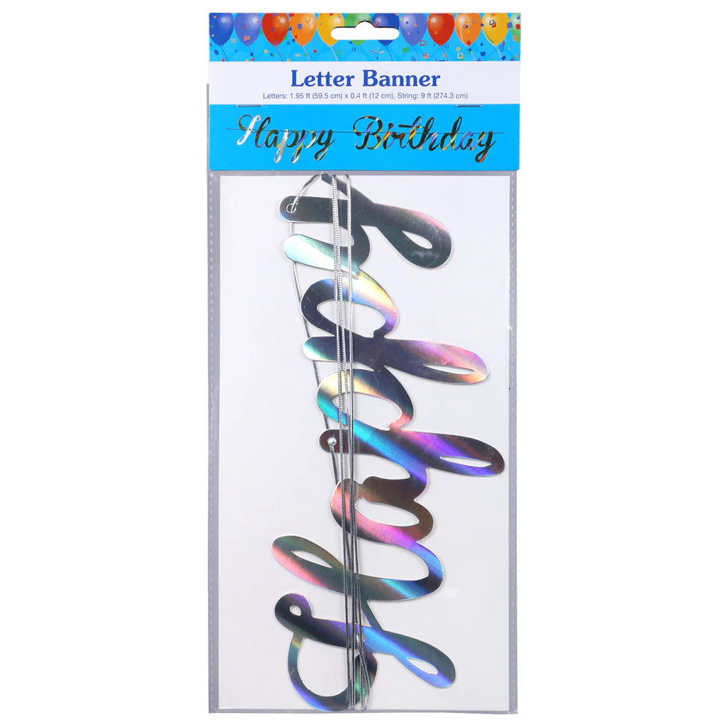 Assortment Details: Foil Happy Birthday Letter Banners assorted between silver and gold